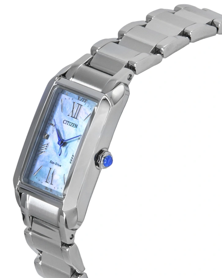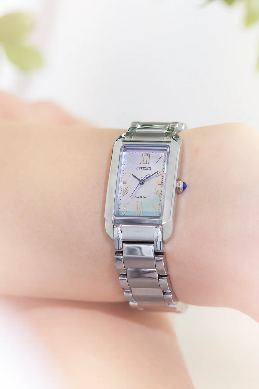 萬年鐘錶 - Citizen 星辰錶 L系列 羅馬時尚珍珠貝光動能方形女錶 EW5620-55N 錶徑19.5MM