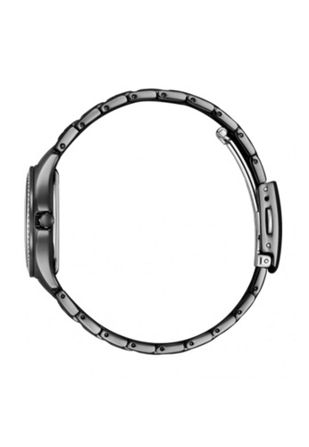 萬年鐘錶 - Citizen 星辰錶 全黑藍面晶鑽奢華光動能女錶 FE1255-84L 錶徑29.5MM
