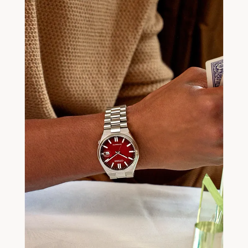 萬年鐘錶 - Citizen 星辰錶 紅色面盤自動上鍊機械男錶 NJ0150-56W 錶徑40MM