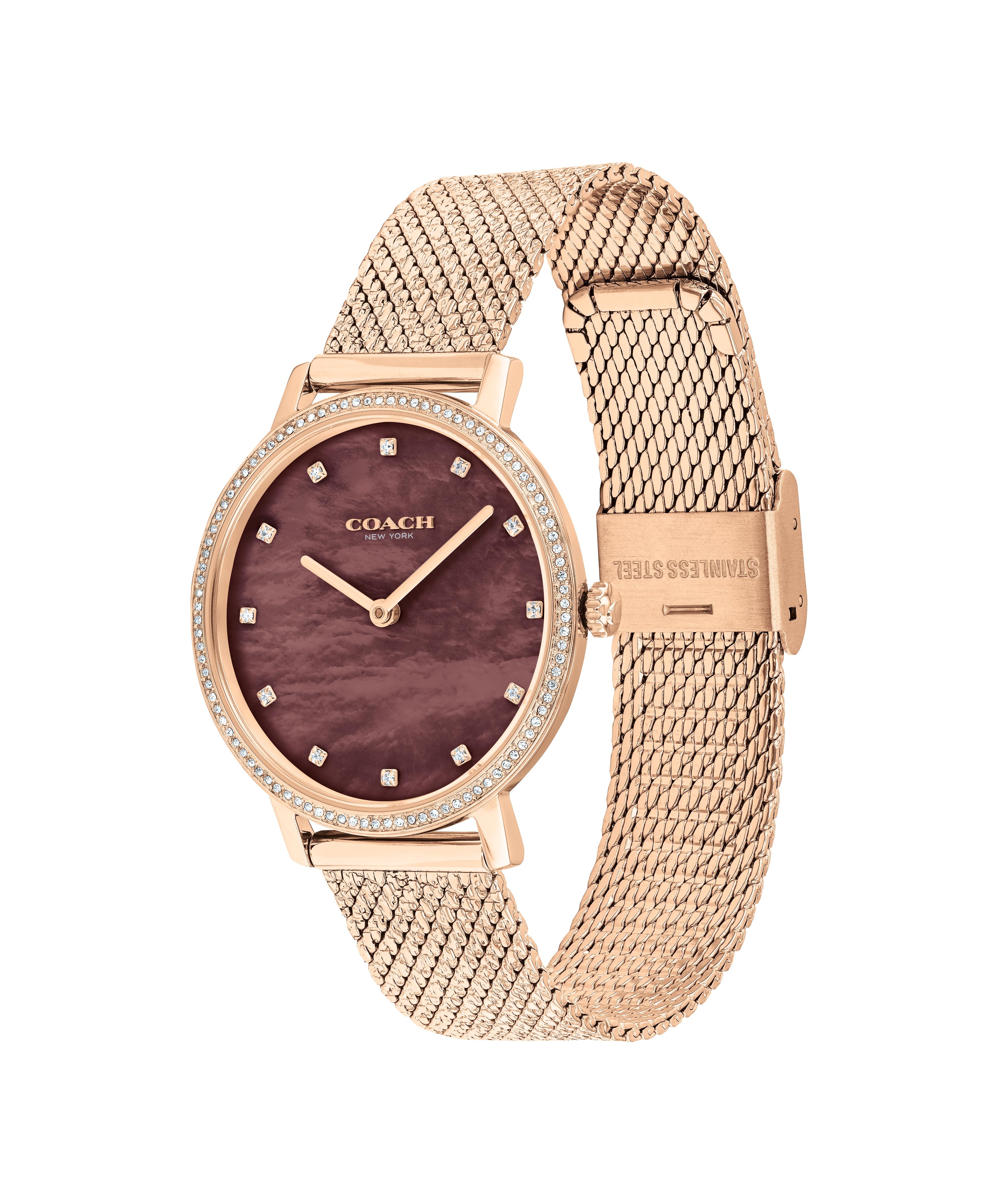 萬年鐘錶 - COACH錶 晶鑽暮色貝殼錶面經典米蘭錶帶女錶 14503828 錶徑35MM
