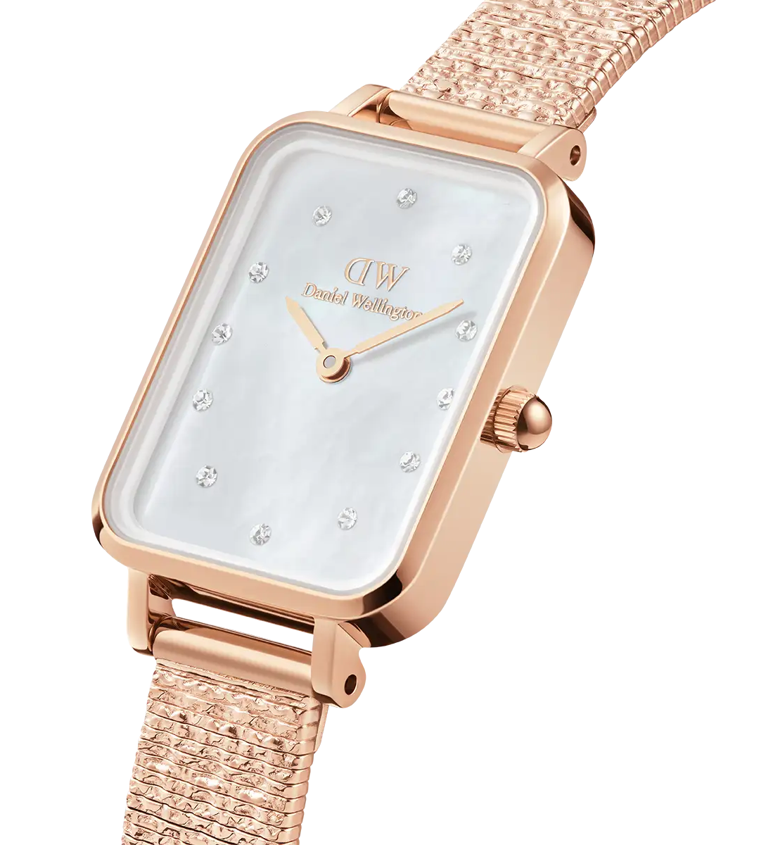 Quadro Pressed Melrose 配備著閃耀粉色光澤的珍珠母貝錶盤, 是一款散發優雅氣息的時尚單品。 這款新錶盤採用珍珠母貝製作, 以其美麗的彩虹色和獨特的紋路而聞名,讓每款都擁有獨一無二的外表,搭配新型麥穗式金屬編織錶帶,錶圈採用不銹鋼製成,並鍍有精緻的玫瑰金,創造專屬於你的浪漫美麗。 方形腕錶就像是一個精美的配飾,特別是這款獨特的新型麥穗式編織錶帶,讓手錶優雅地成為你風格的一部份!