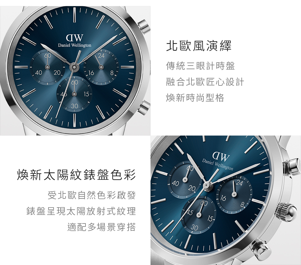 Iconic Motion 是Daniel Wellington 防水系列等級最高的腕錶。防水等級升級至10ATM,並搭配全新合成橡膠錶帶FKM(氟橡膠)。全系列提供玫瑰金與極光銀兩款配色,讓錶款整體呈現更加吸睛亮眼。專為樂於生活,享受生活多變的人群而設計,一款結合功能與時尚的經典腕錶。