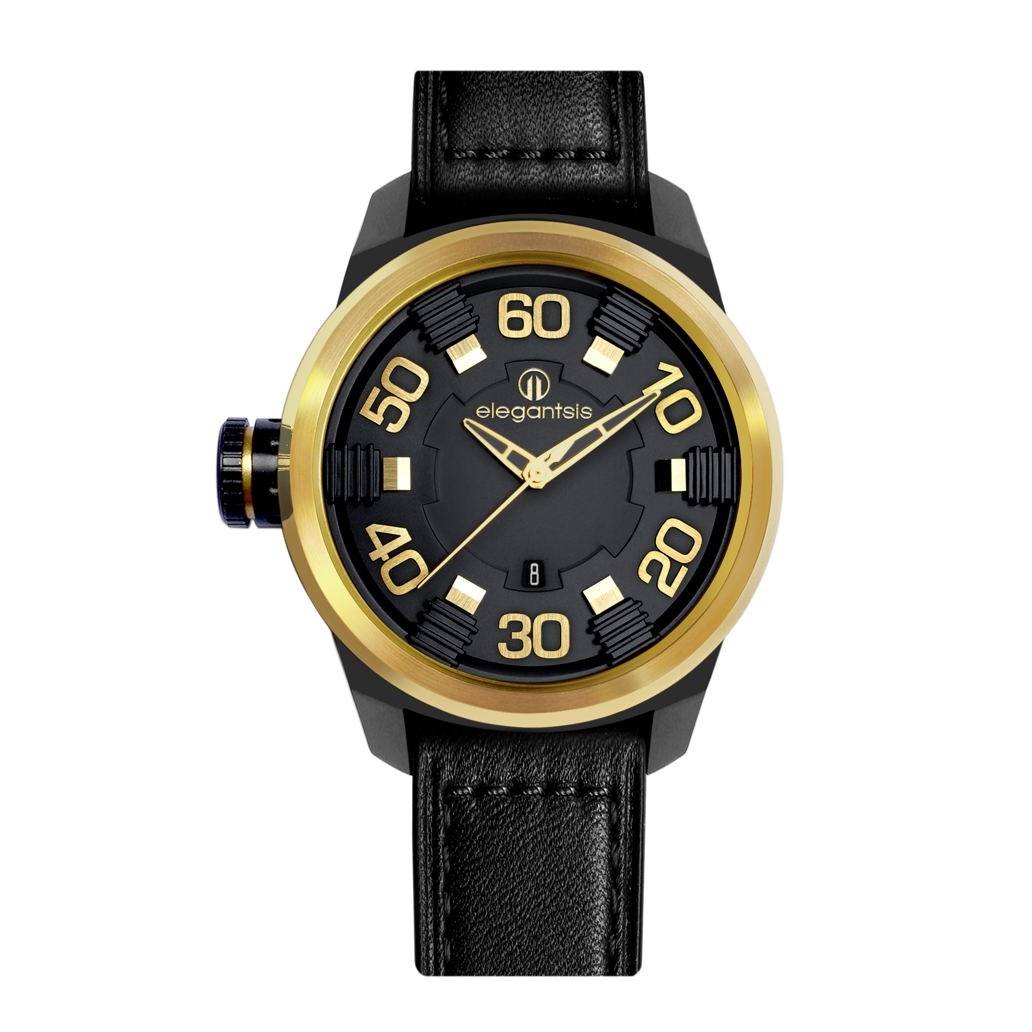 萬年鐘錶 - elegantsis 愛樂時 JF48N 戰鬥機螺旋槳後的引擎排列式面板設計 黑面咖啡色皮革錶帶 ELJF48N-2G02LC 錶徑48MM