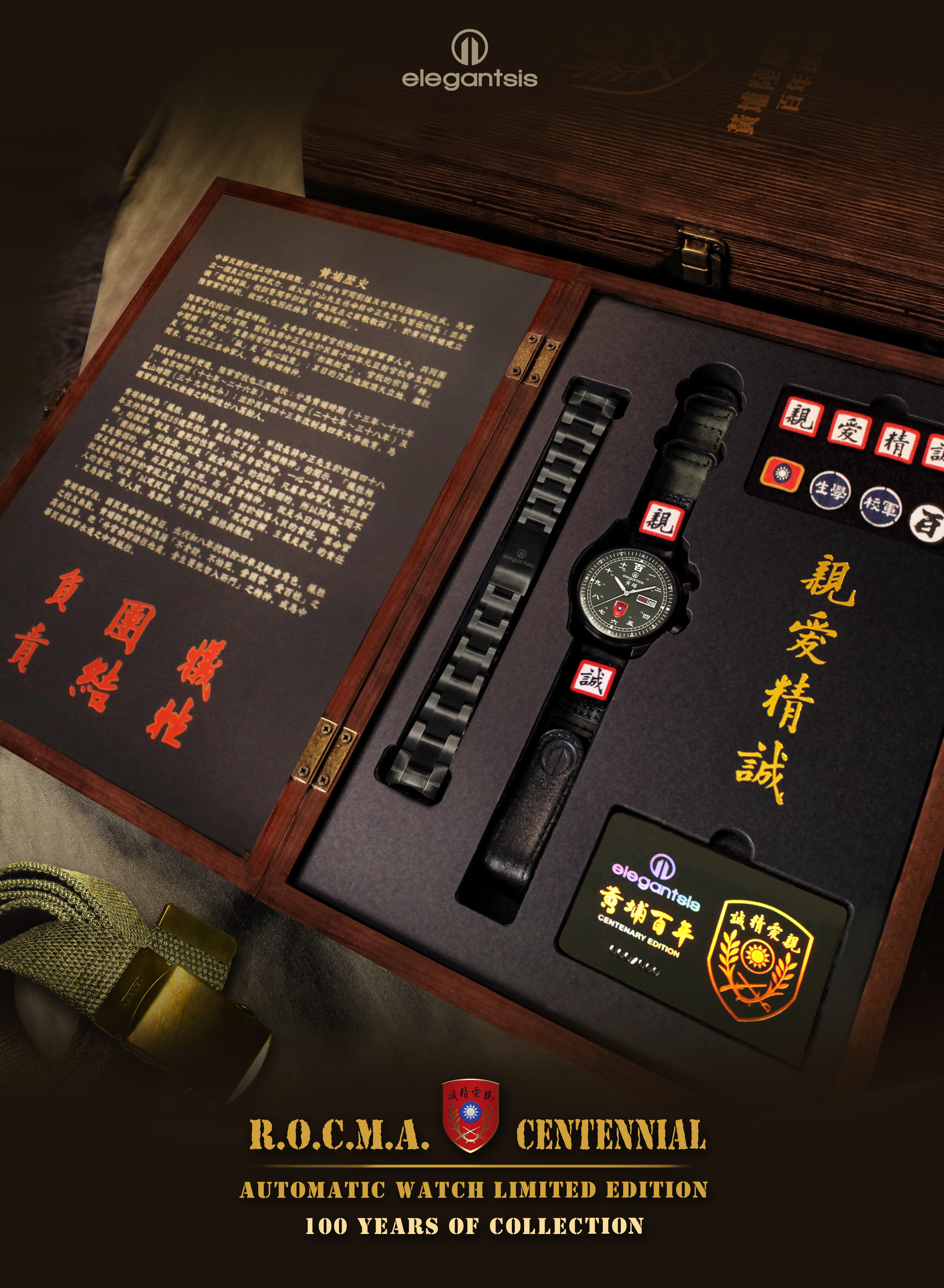 黃埔100週年紀念腕錶中華民國初建立時經歷重重困難,於廣州黃埔建立陸軍軍官學校,也稱「黃埔軍校」。國父孫中山任命蔣中正為首任校長;並於民國13年6月16日於黃埔開學典禮持手書傳承"親愛精誠"校訓,陸軍官校校訓希望「親愛精誠」由陸軍官校培訓出軍事人才,共同團結為革命而努力,