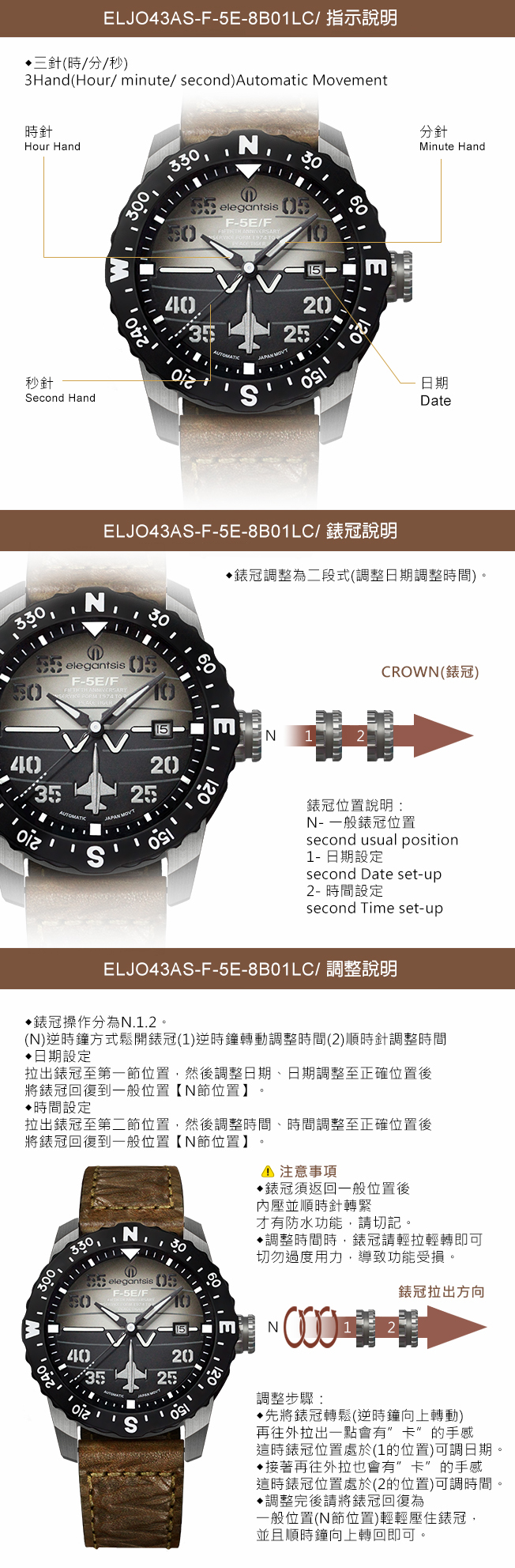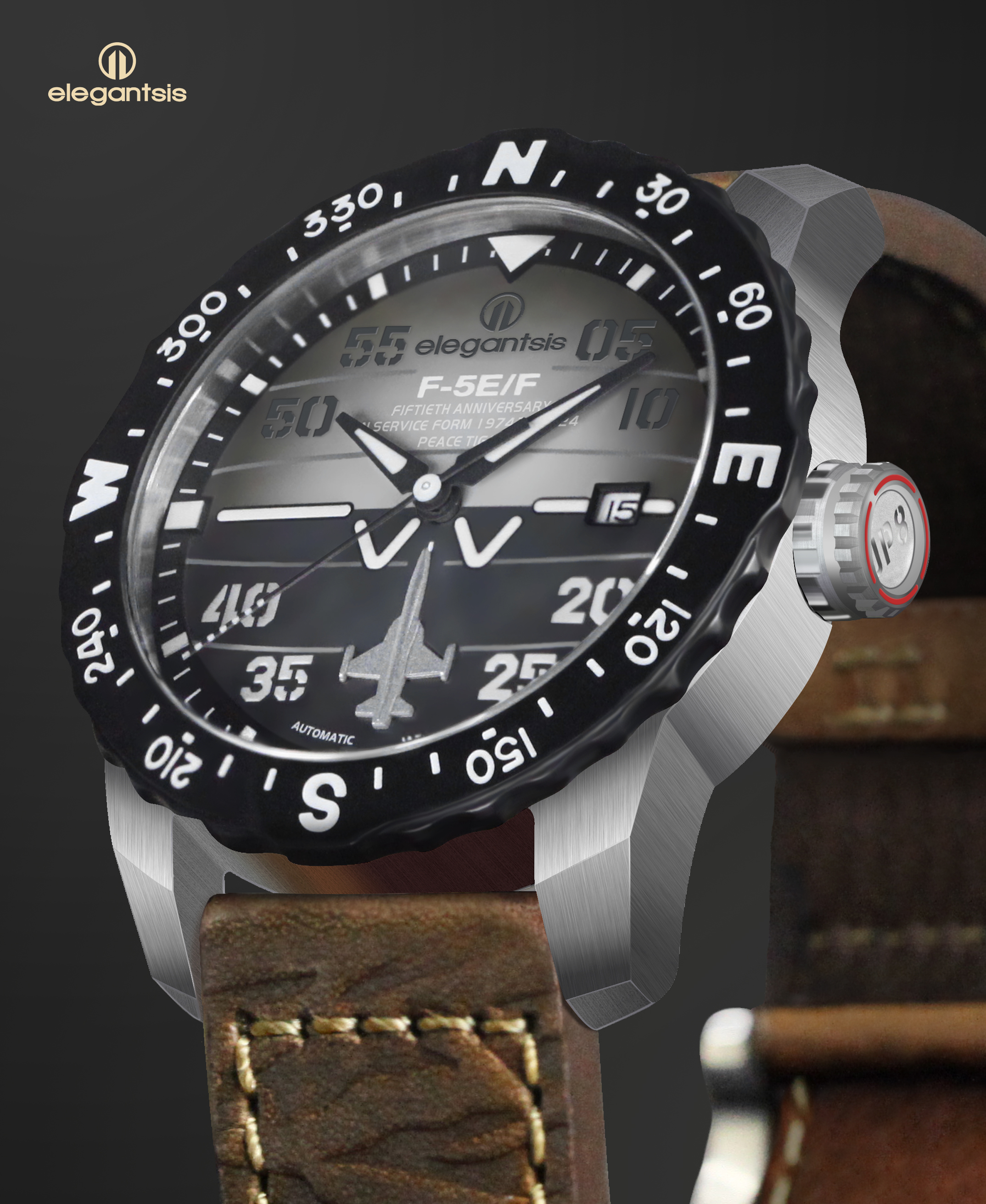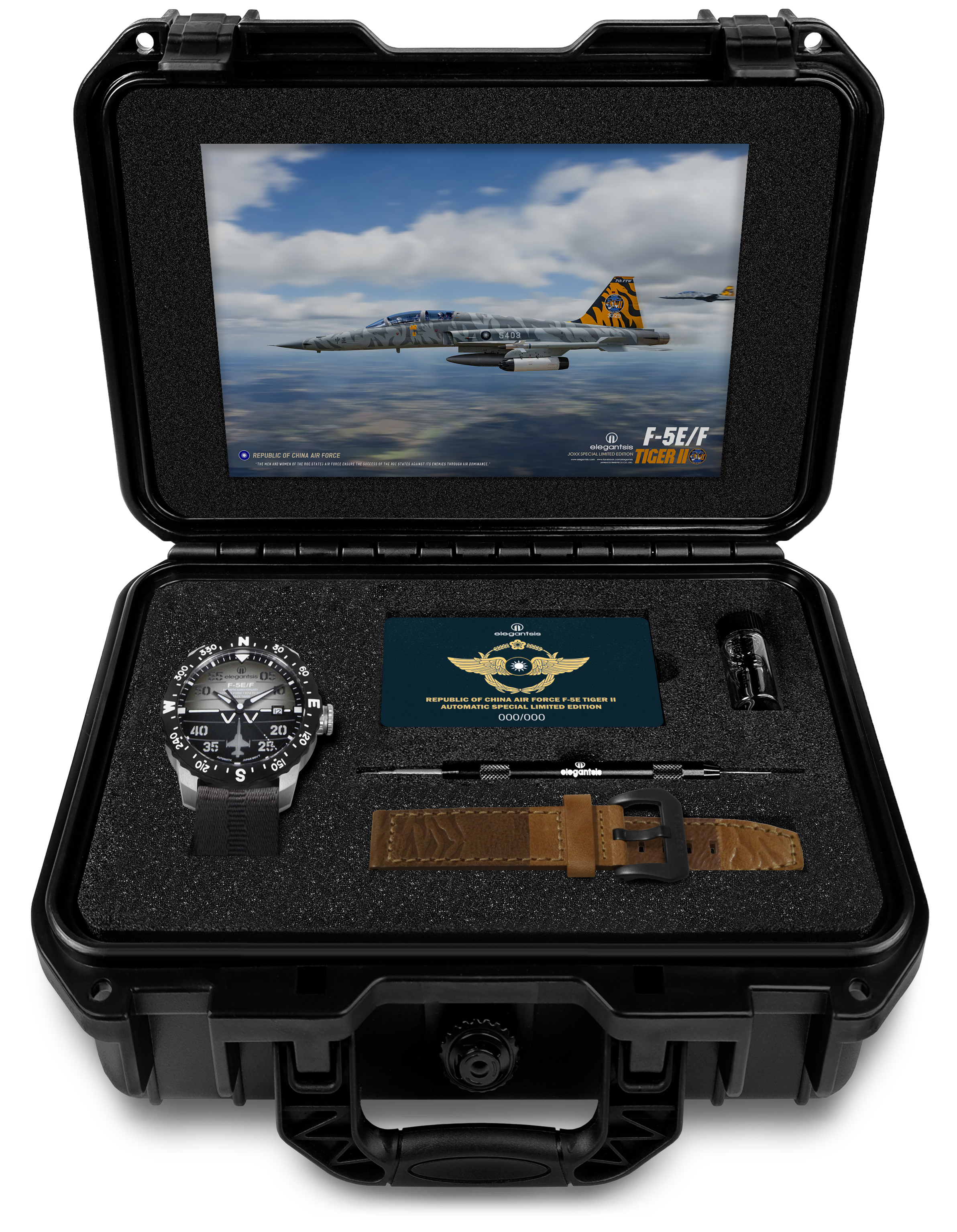 萬年鐘錶 - elegantsis 愛樂時 中華民國空軍F-5E服役五十週年紀念機械款男錶 ELJO43AS-F-5E-8B01LC 錶徑 : 43MM