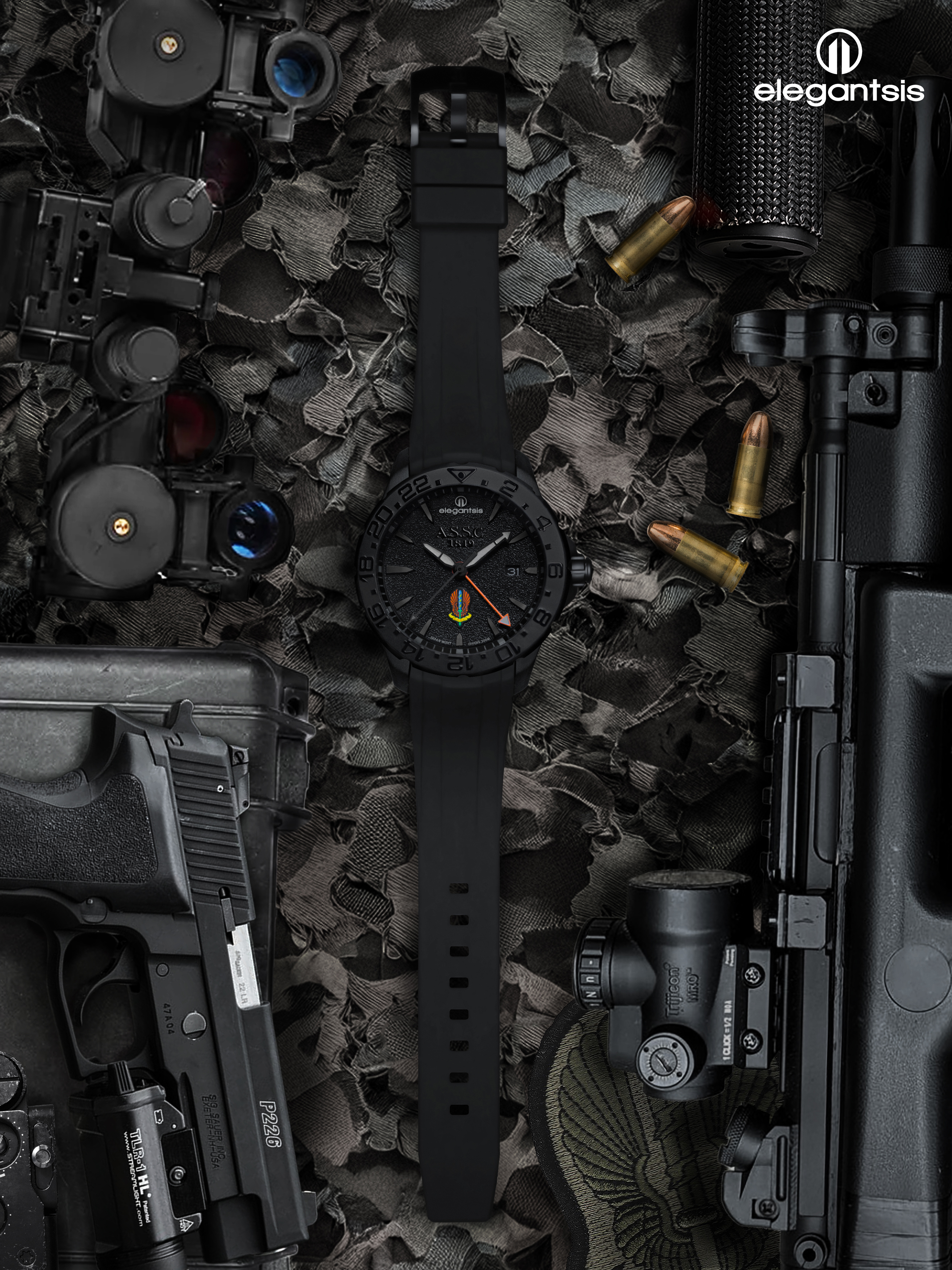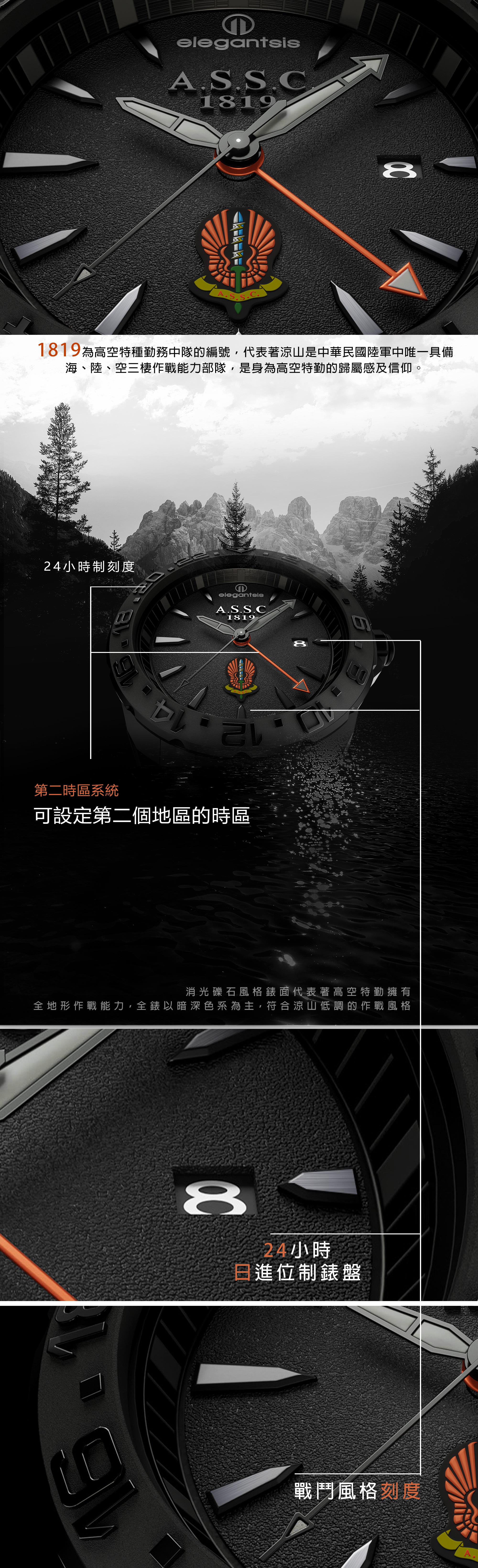 萬年鐘錶 - elegantsis 愛樂時 高空特種勤務中隊-GMT自動機械男錶 ELJO65AS-ASSC-NB01MA 錶徑44MM