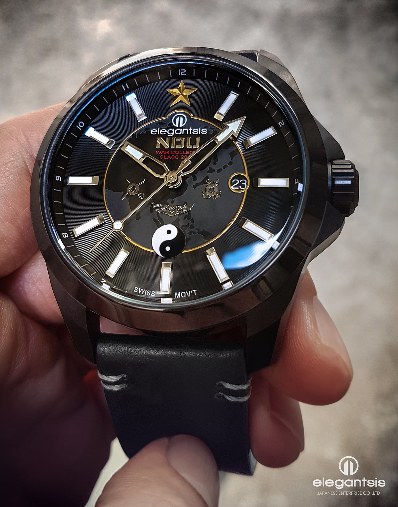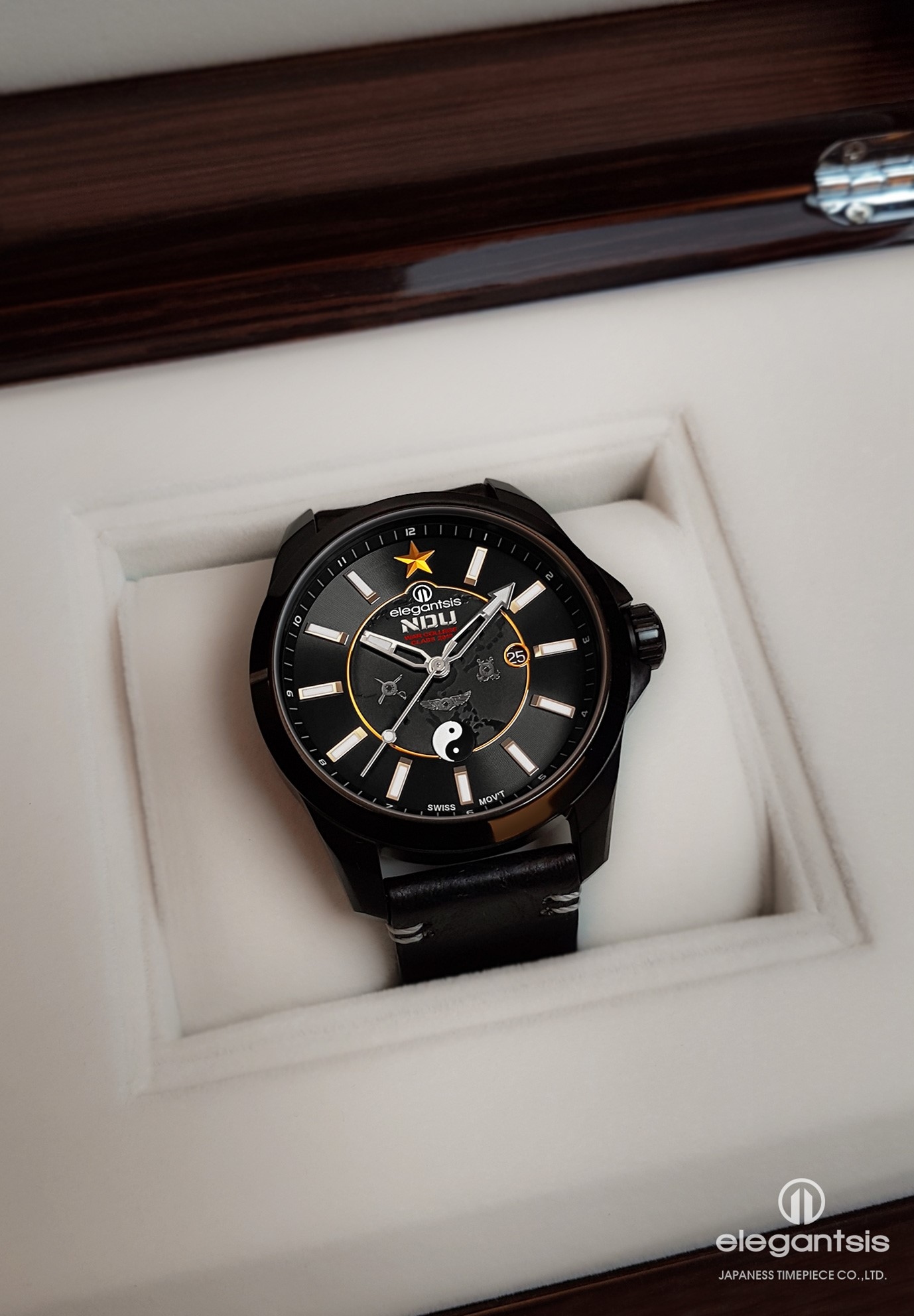 萬年鐘錶 - elegantsis 愛樂時 國防大學戰爭學院限量機械腕錶 ELJO65AS-NDU 錶徑47.5MM