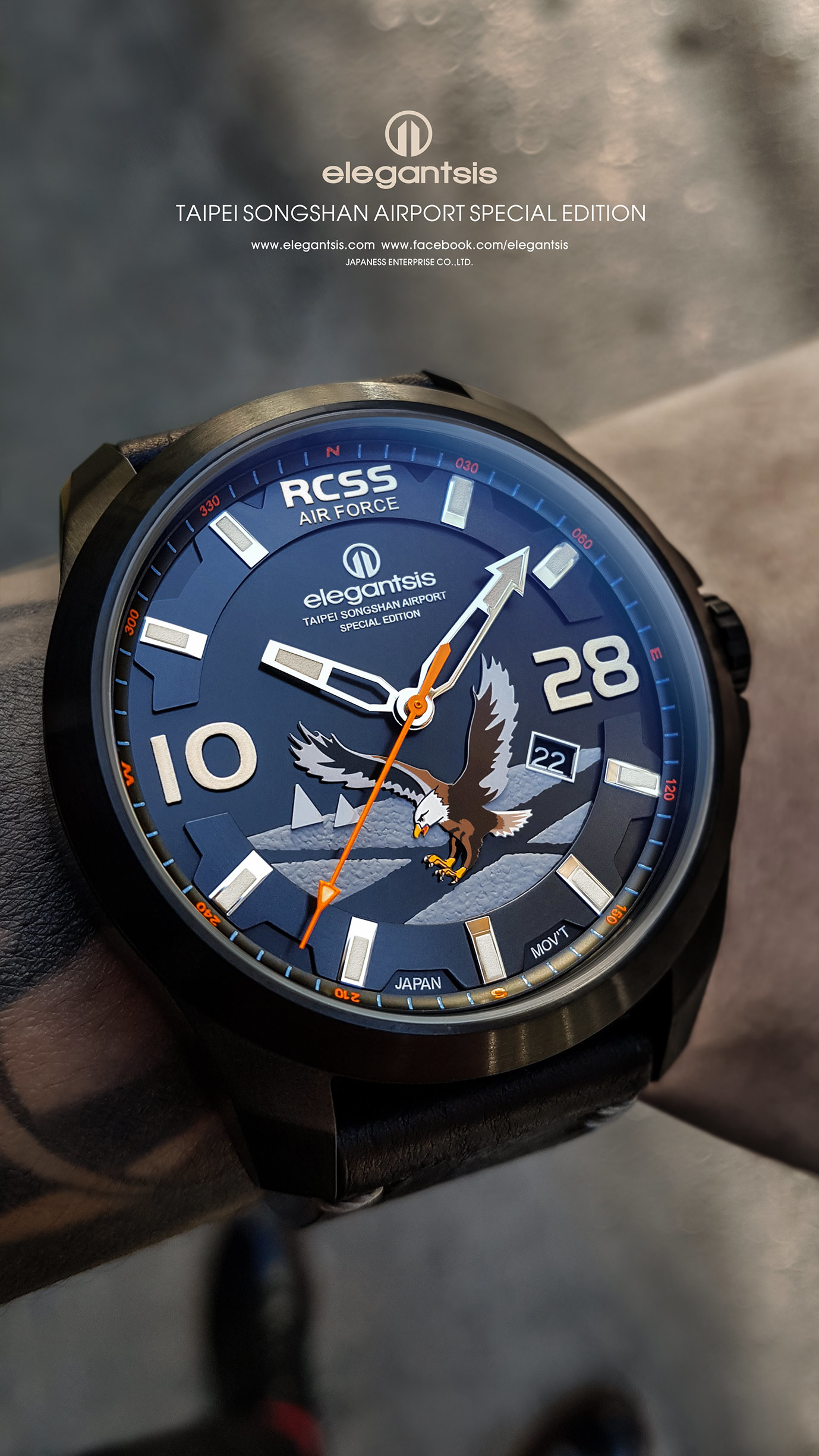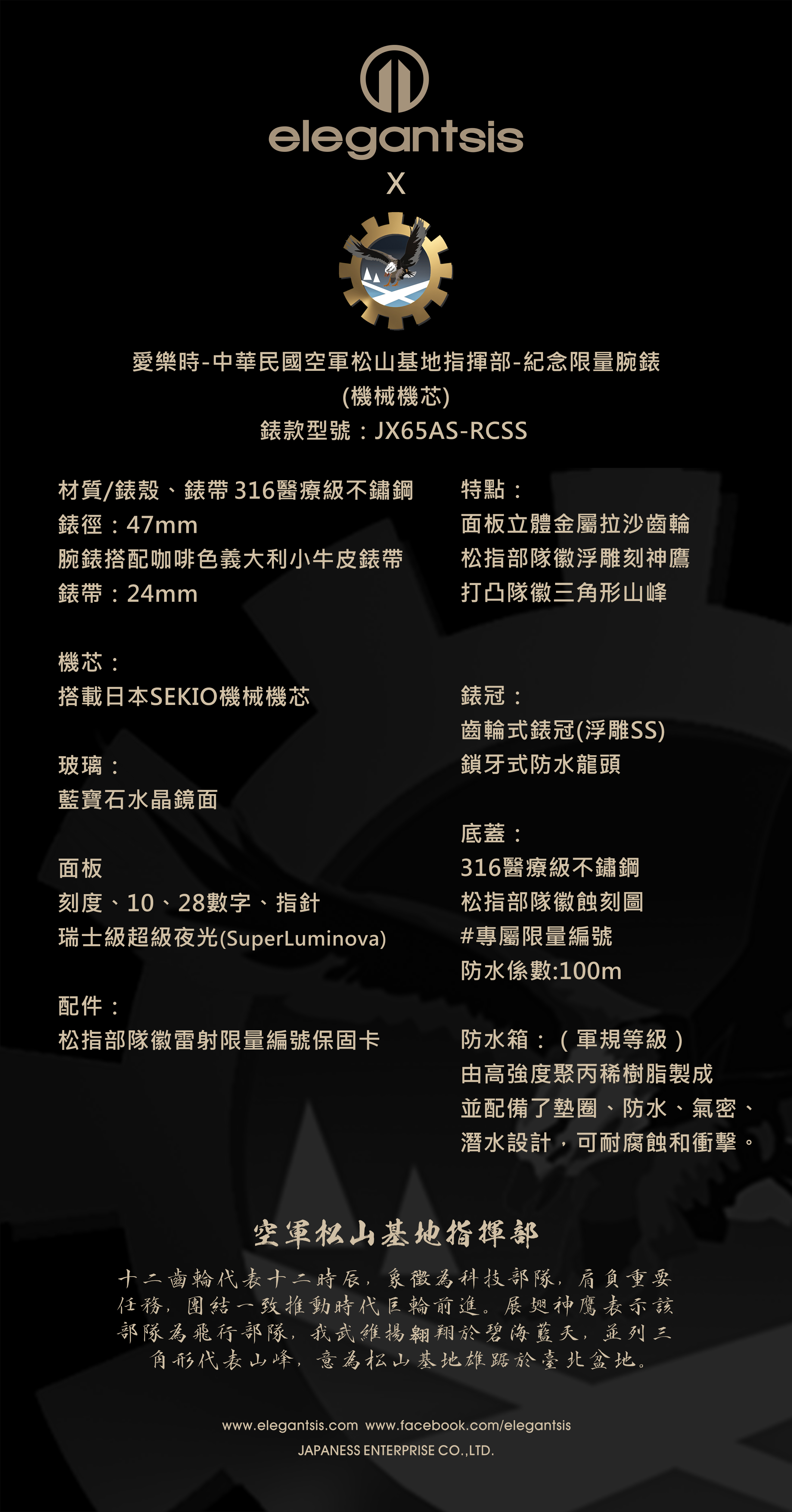 萬年鐘錶 - elegantsis 愛樂時 空軍松山基地指揮部限量機械腕錶 ELJO65AS-RCSS 錶徑47.5MM