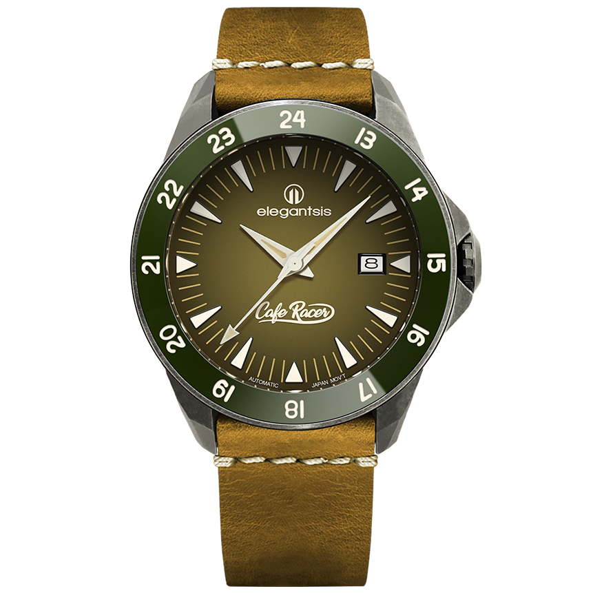 萬年鐘錶 - elegantsis 愛樂時 CafeRacer風格主題自動機械腕錶 JR65AS-復刻綠 ELJR65AS-C1NG4L 錶徑44MM