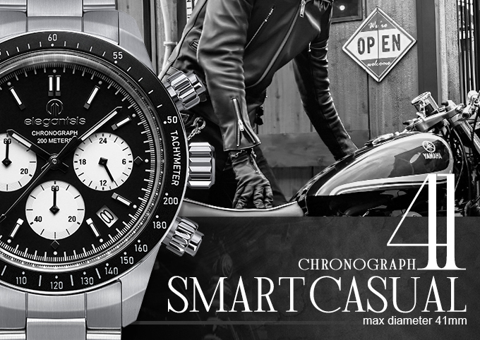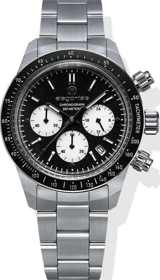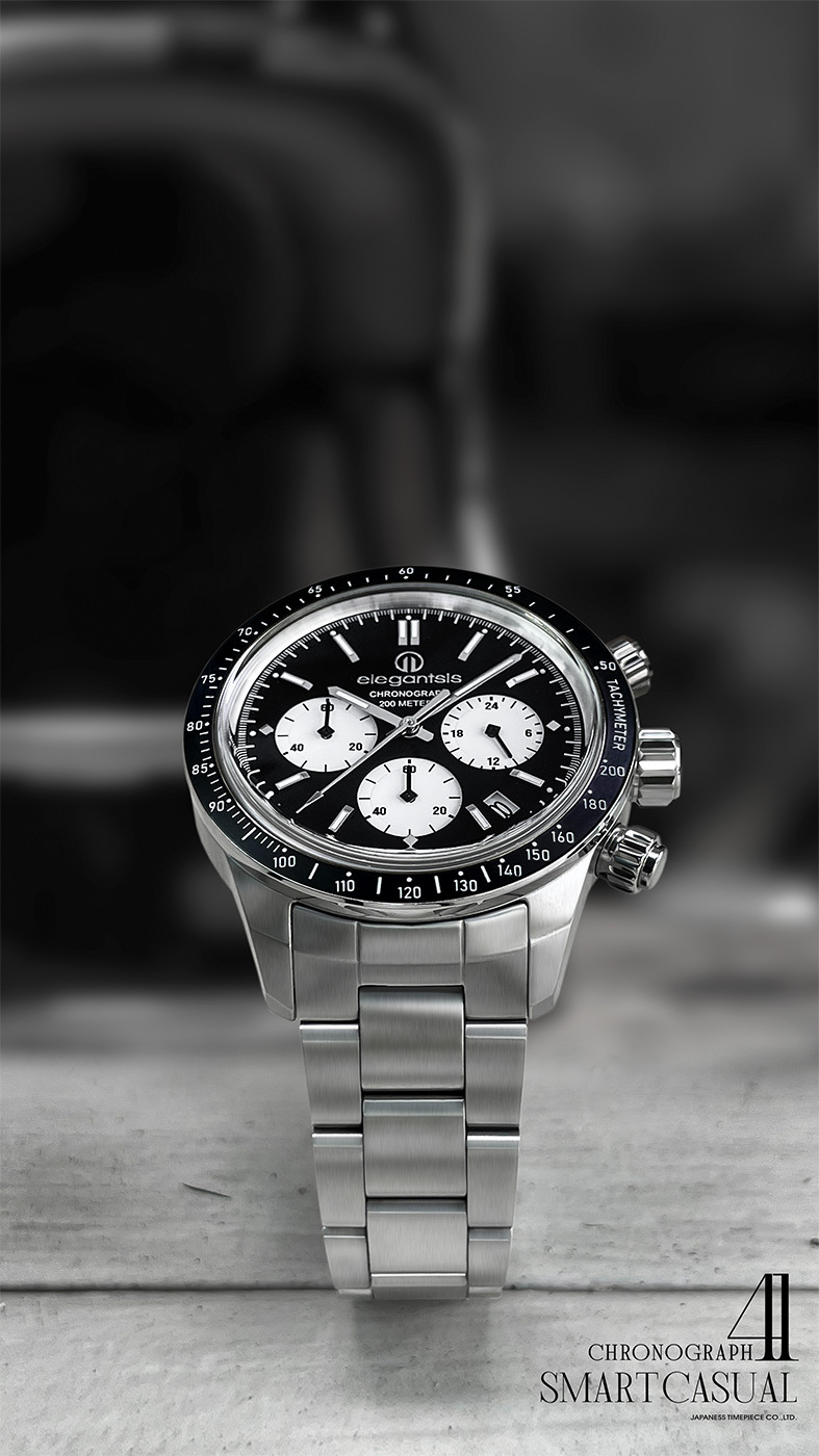 萬年鐘錶 - elegantsis 愛樂時 JT41QS 經典黑與白三眼計時男錶 ELJT41QS-VB01MA 錶徑41MM