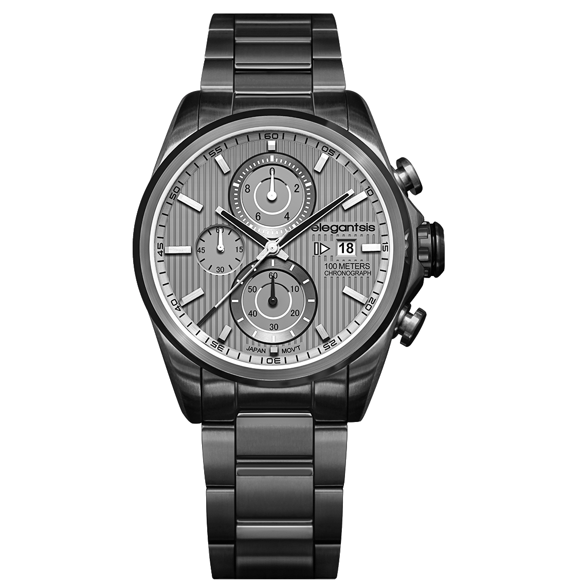 萬年鐘錶 - elegantsis 愛樂時 JT42R MOTORCYCLISTS STYLE 騎士精選腕錶 槍色灰面不鏽鋼錶帶ELJT42R-6G05MA 錶徑46MM