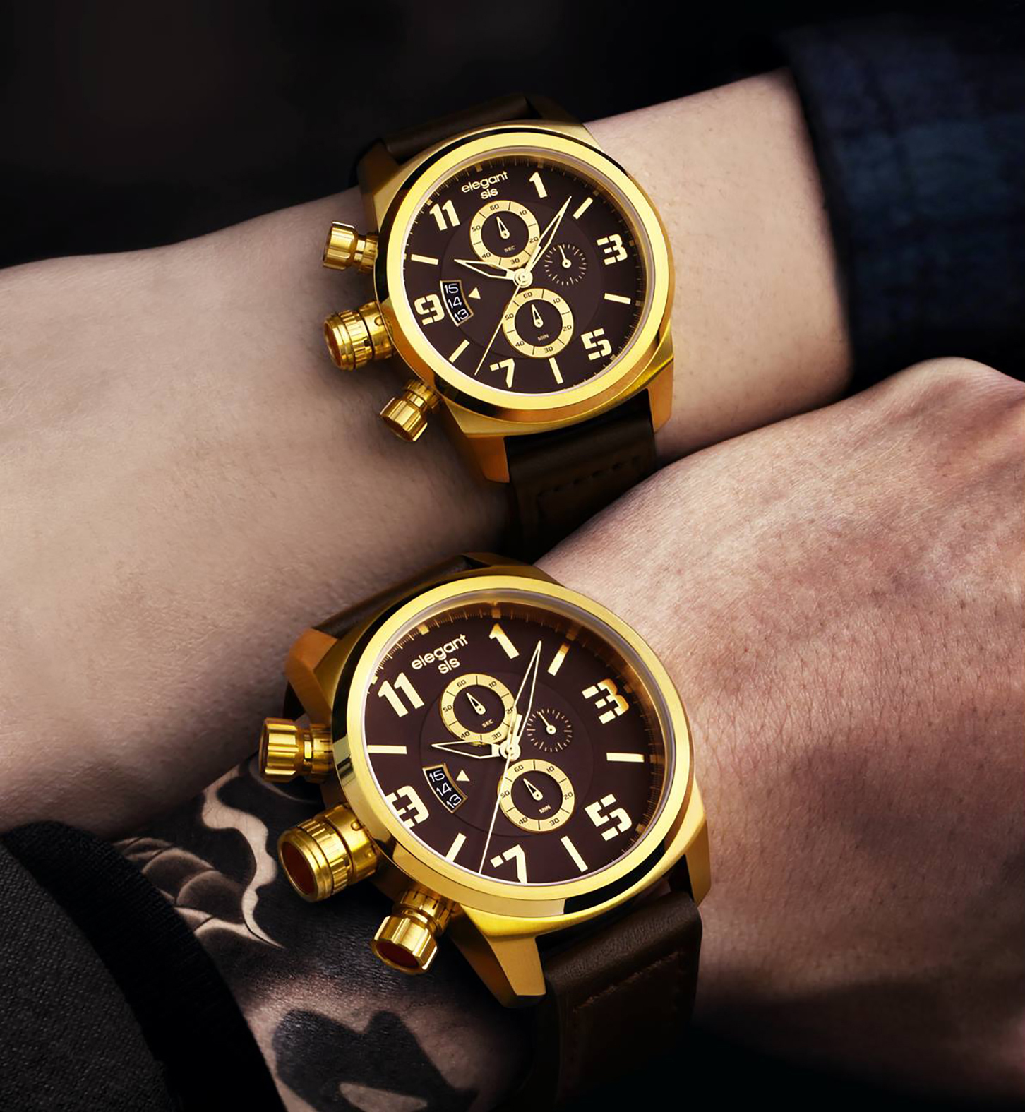萬年鐘錶 - elegantsis 愛樂時 JF48個性是戴在手上的 可搭配選購個性對錶 ELJT48-OB13LC 咖啡金款 錶徑48MM