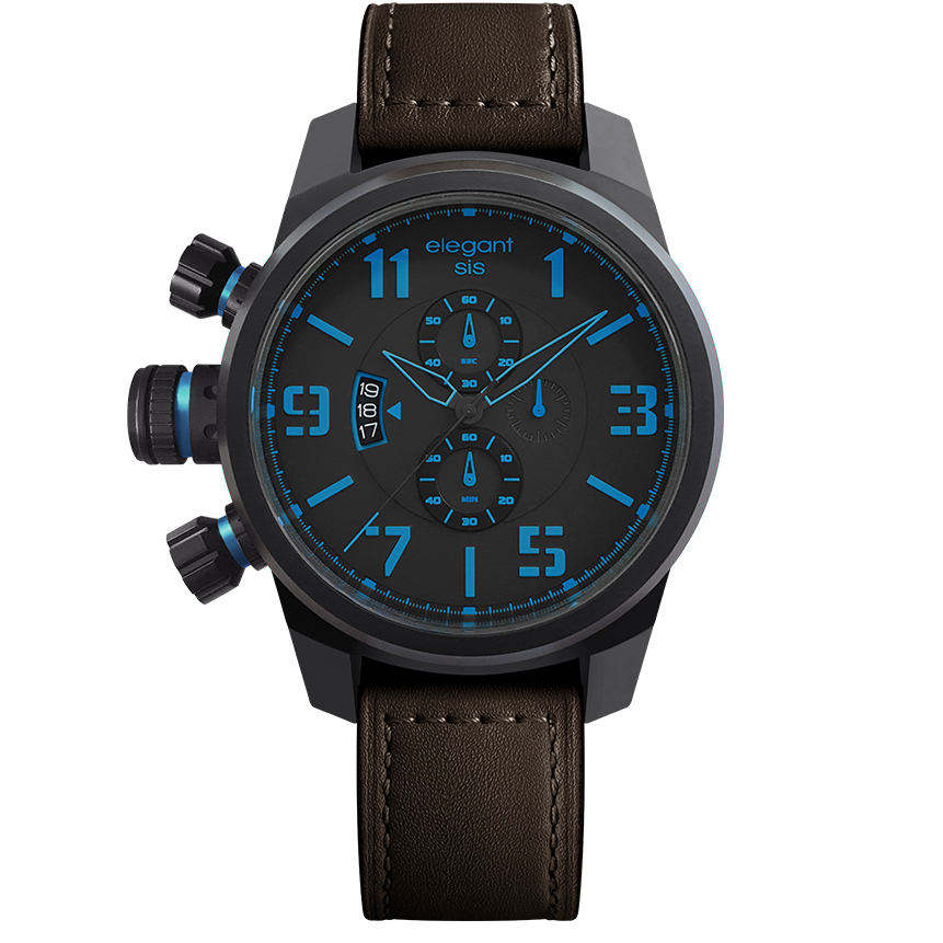 萬年鐘錶 - elegantsis 愛樂時 JF48個性是戴在手上的 可搭配選購個性對錶 ELJT48-OU02LC 黑面藍色指針歀 錶徑48MM