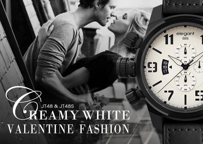 萬年鐘錶 - elegantsis 愛樂時 JF48個性是戴在手上的 可搭配選購個性對錶ELJT48-OW16LC 米白色錶面款 錶徑48MM