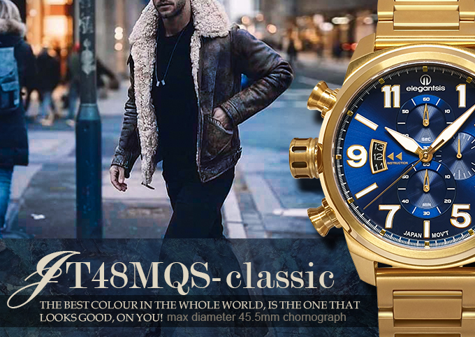 萬年鐘錶 - elegantsis 愛樂時 JT48MQS-經典 全金藍面 ELJT48MQS-OB04MA 錶徑45.5MM