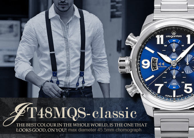 萬年鐘錶 - elegantsis 愛樂時 JT48MQS-經典 藍面 ELJT48MQS-OB05MA 錶徑45.5MM