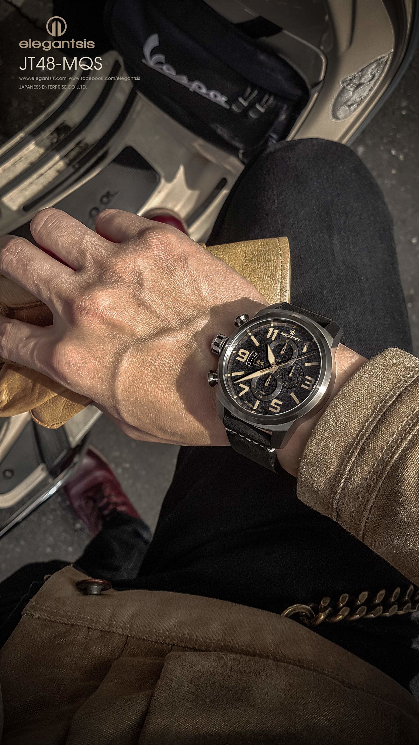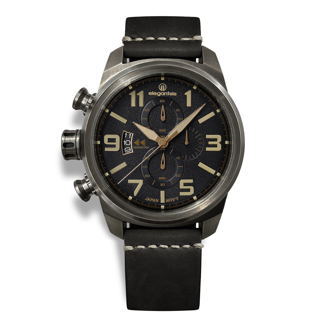 萬年鐘錶 - elegantsis 愛樂時 JF48 復古軍事錶 (暗夜灰) ELJT48MQS-OG03LC 錶徑45.5MM