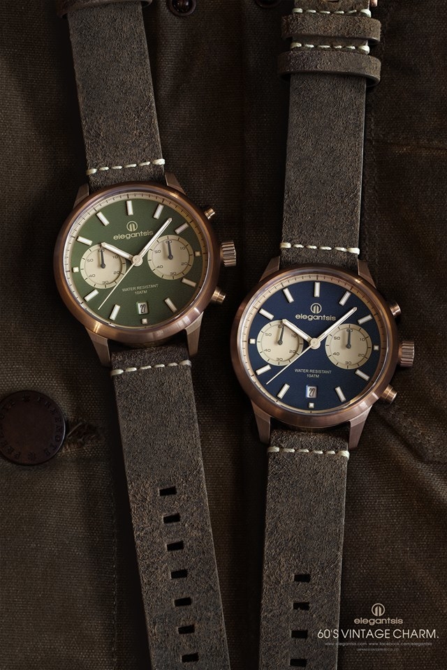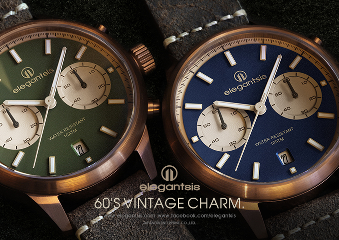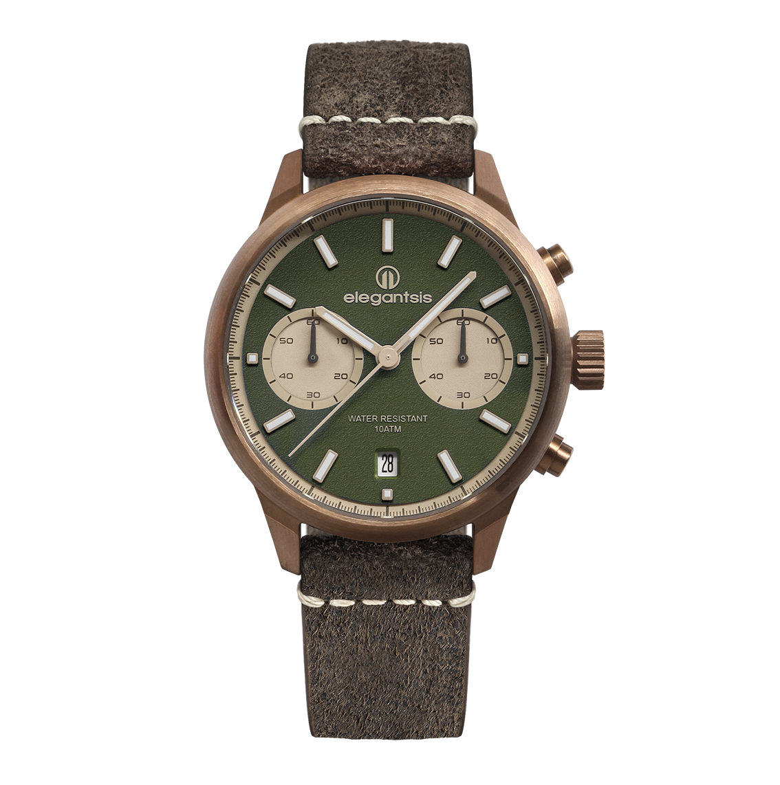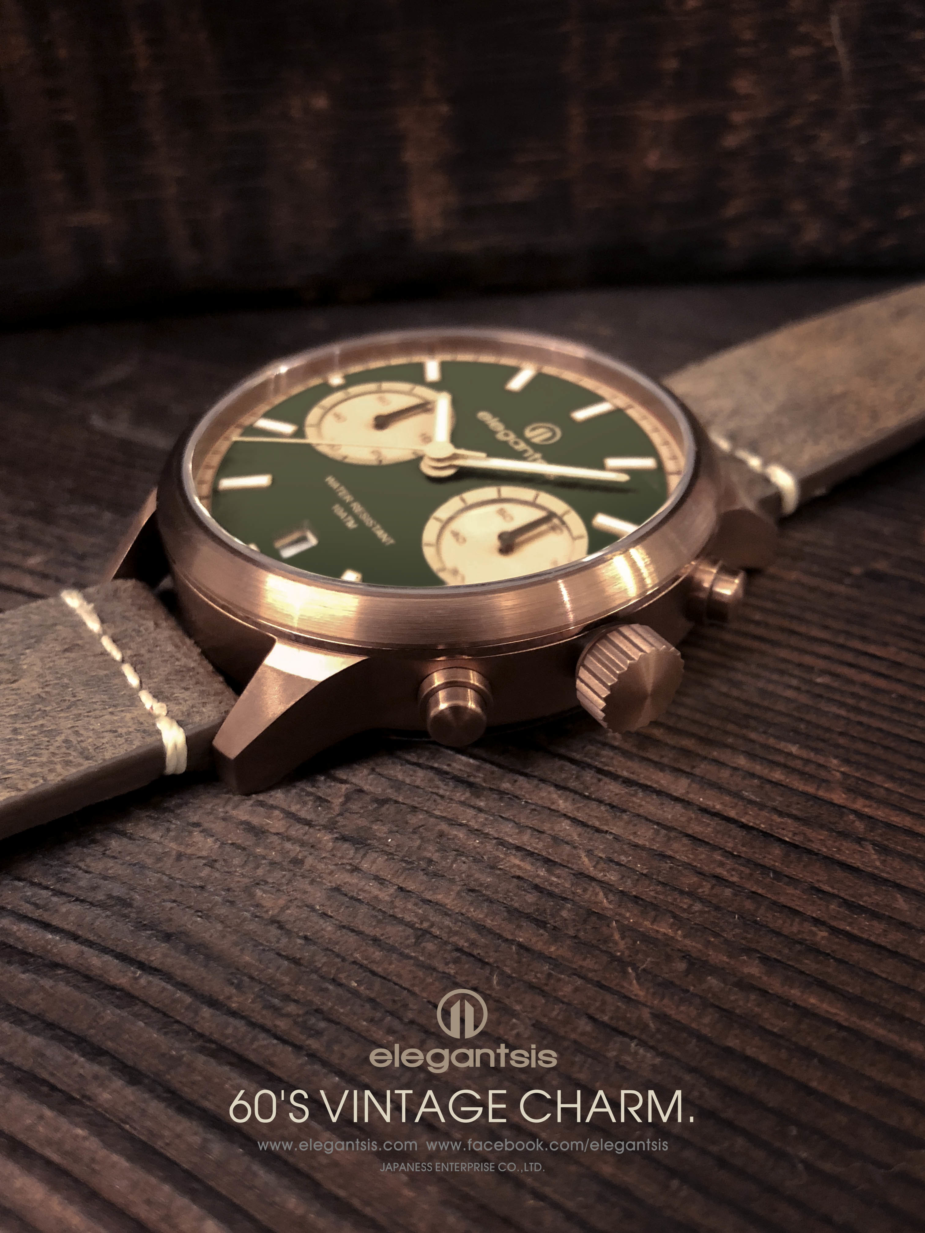 萬年鐘錶 - elegantsis 愛樂時 JT58QS-承載老靈魂的新腕錶 復刻綠面復古牛皮錶帶 特殊銅色錶殼 ELJT58QS-6G02LC 錶徑42MM