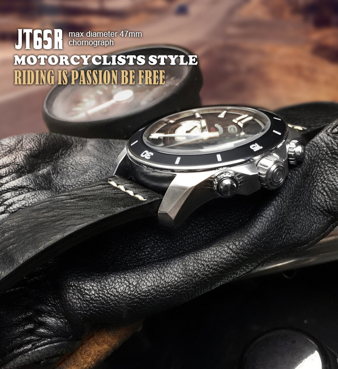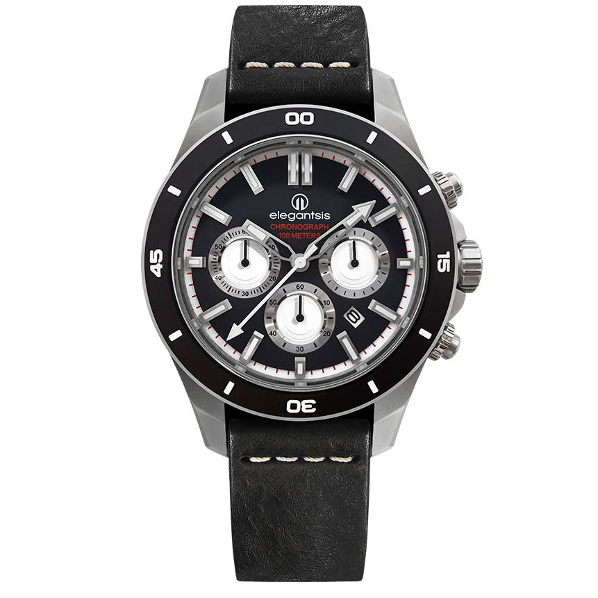 萬年鐘錶 - elegantsis 愛樂時 JT65R 騎士精神腕錶 黑面黑色皮革錶帶 ELJT65R-6B03LC錶徑47MM
