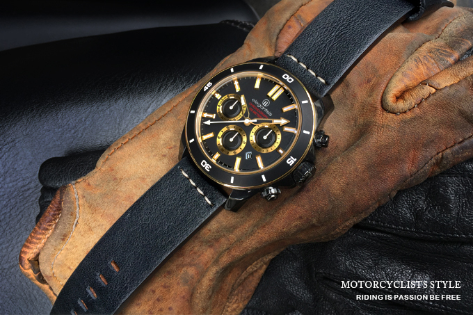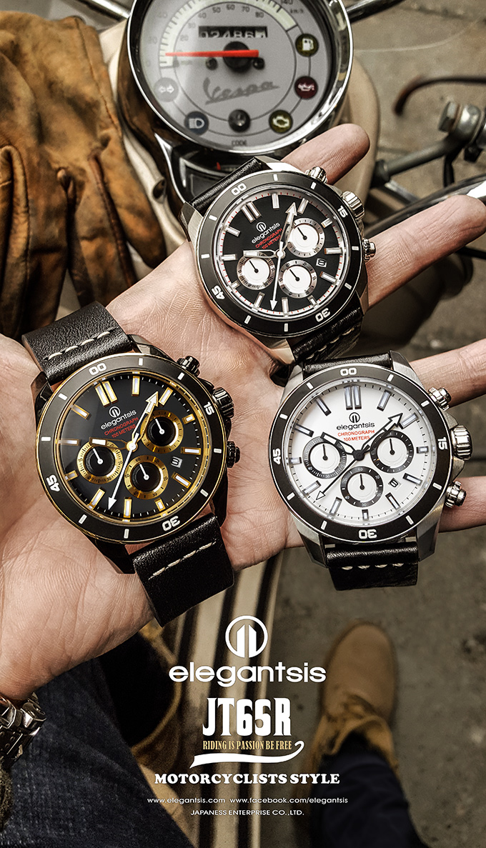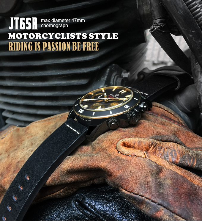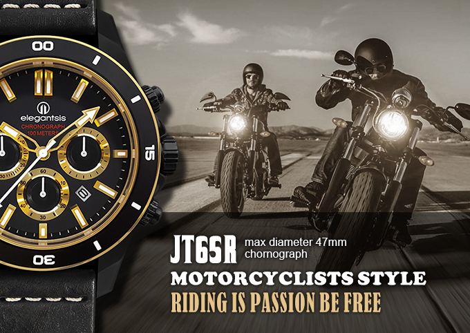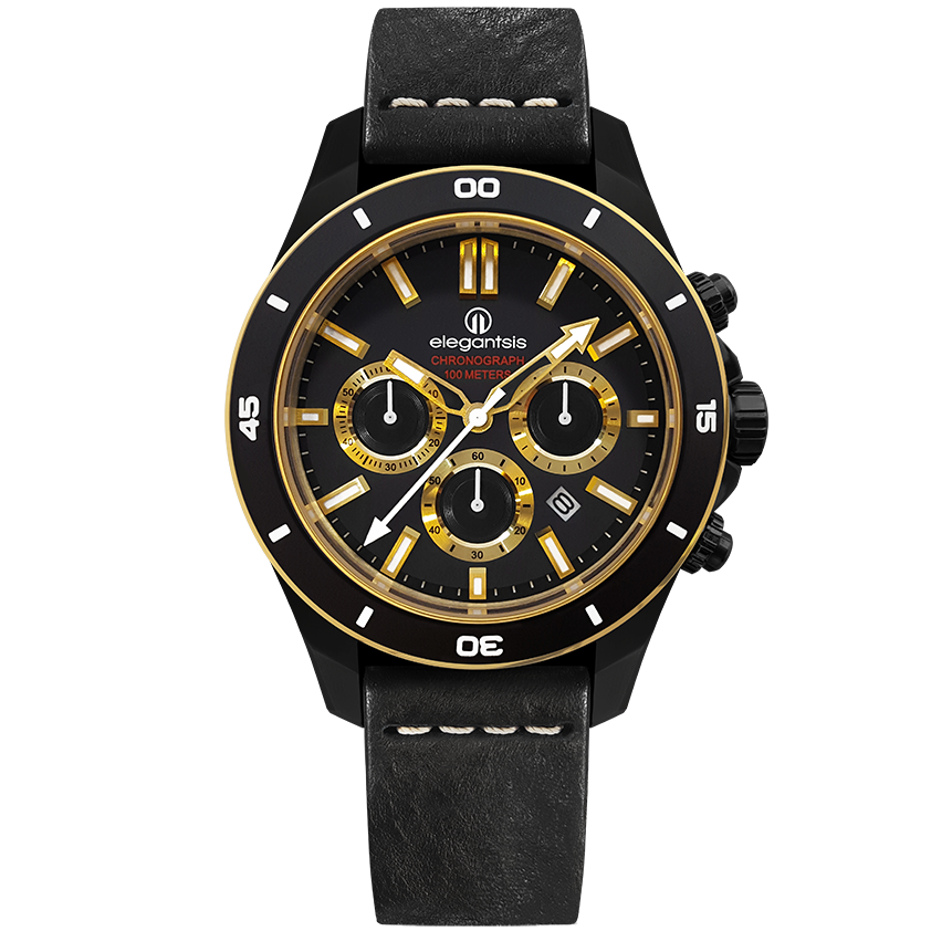 萬年鐘錶 - elegantsis 愛樂時 JT65R 騎士精神腕錶 黑金配色黑色皮革錶帶 ELJT65R-6G02LC 錶徑47MM