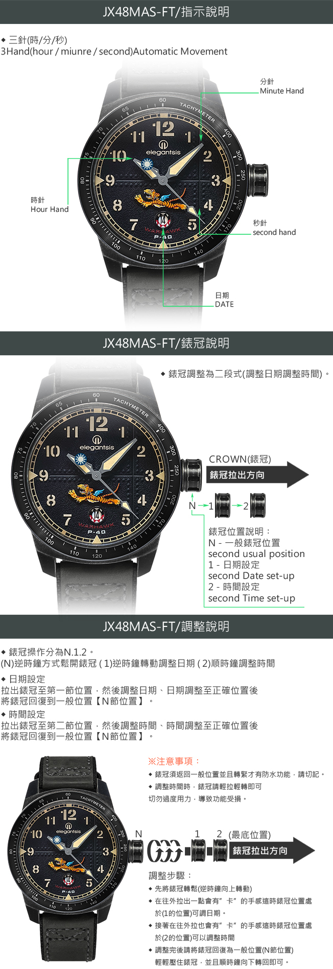 腕錶規格 - elegantsis 愛樂時 飛虎隊