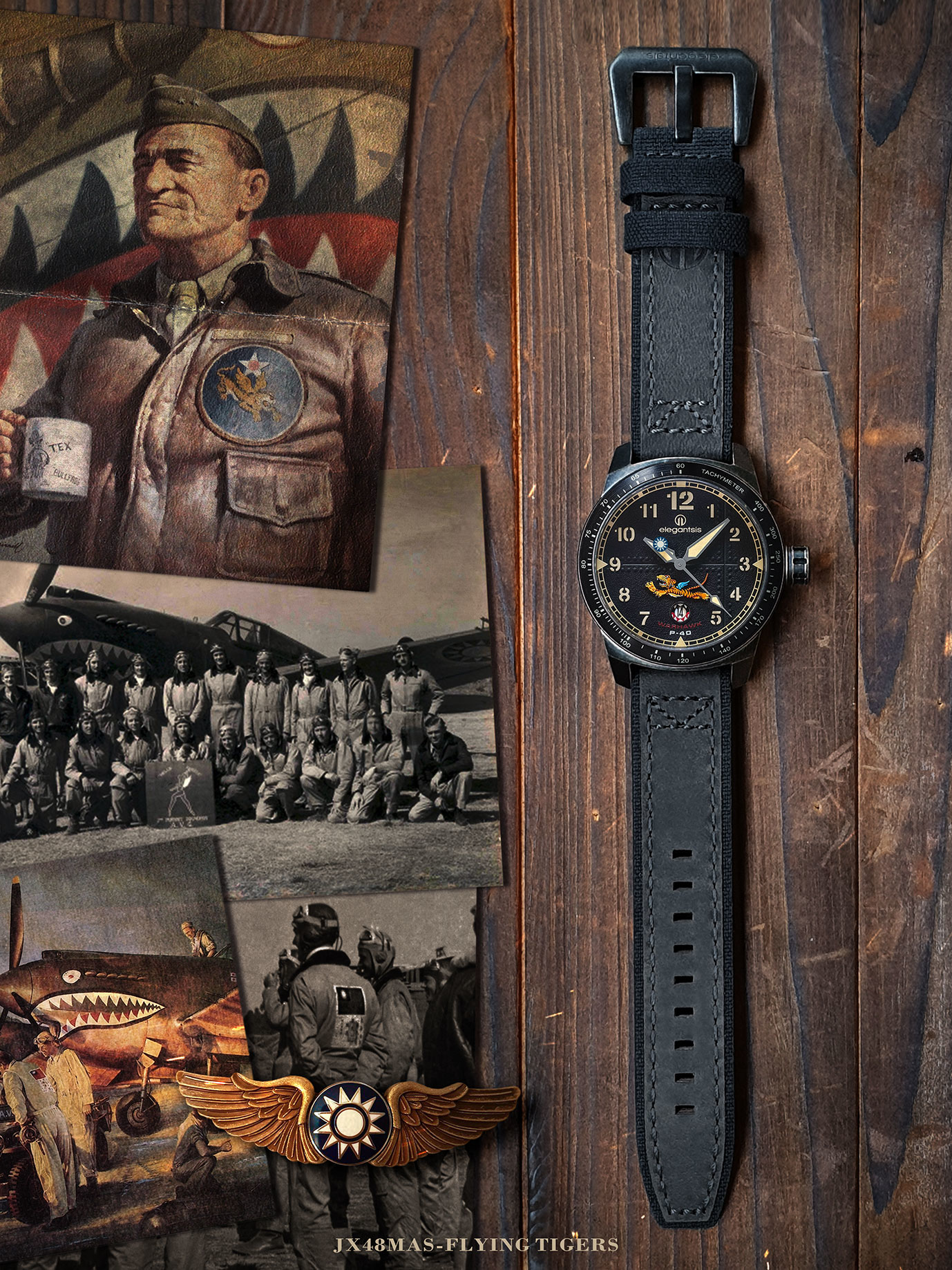 萬年鐘錶 - elegantsis 愛樂時 飛虎隊- 黑 ELJX48MAS-FT-NEB01LC 錶徑45.5MM