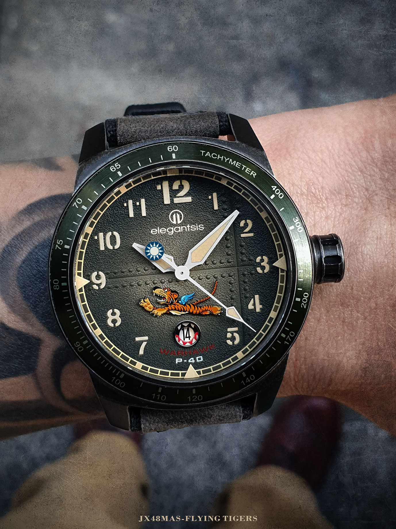 萬年鐘錶 - elegantsis 愛樂時 飛虎隊- 綠 ELJX48MAS-FT-NEG02LC 錶徑45.5MM