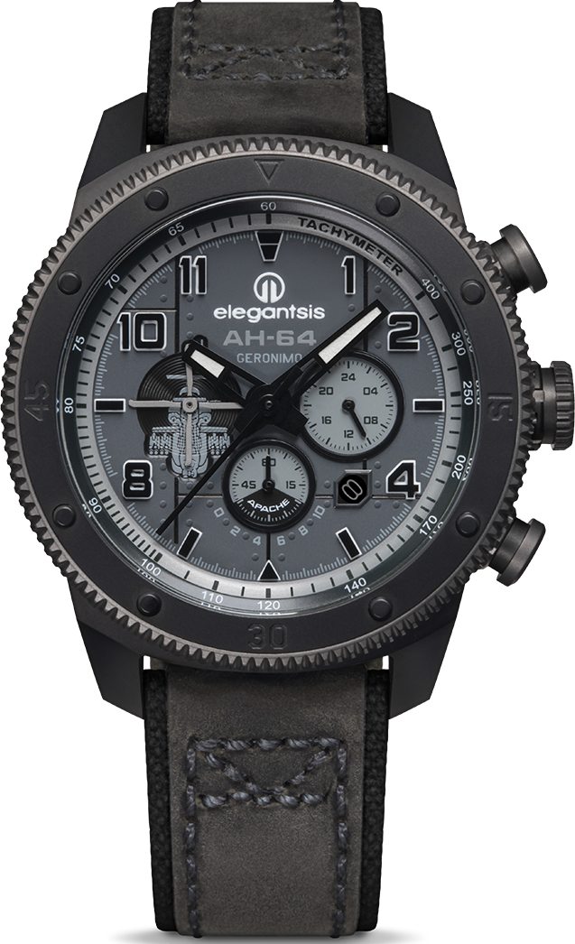 • 愛樂時  灰色款 - 阿帕契限定款三眼計時男錶 ELJX48MQS-AH64-OG02LC