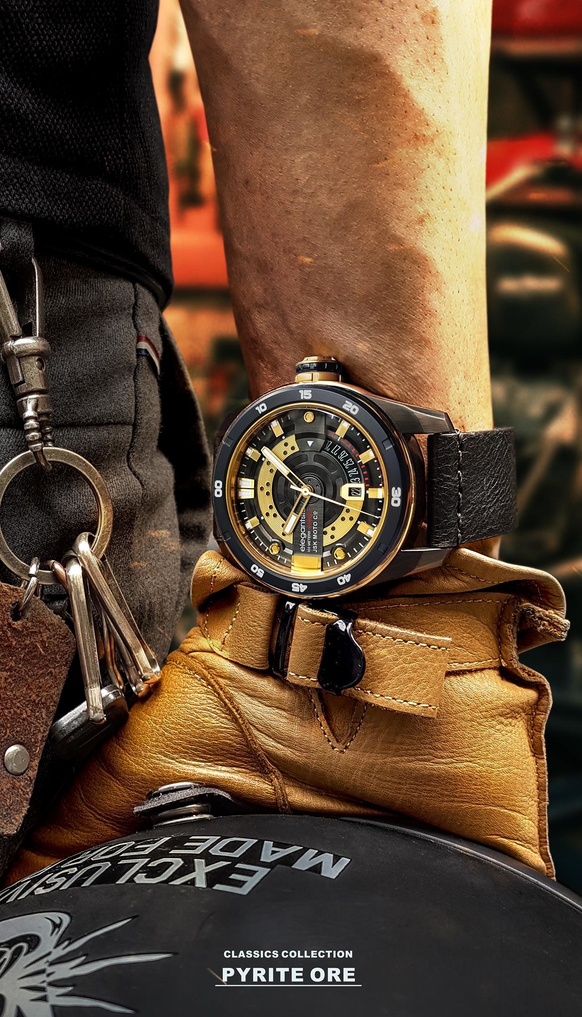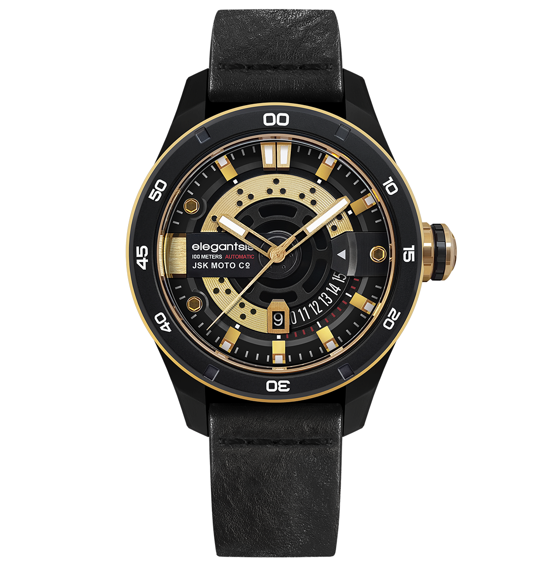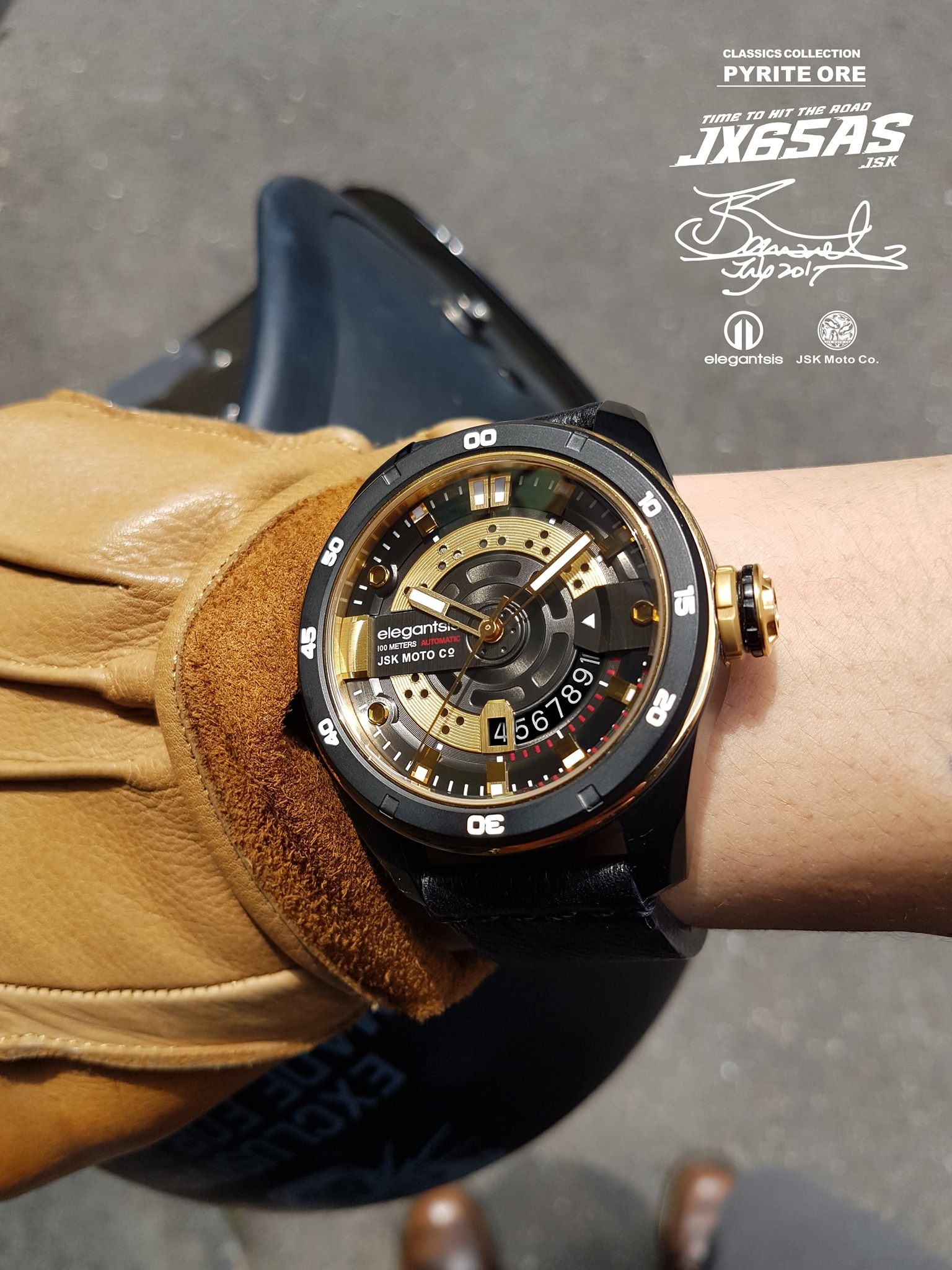 萬年鐘錶 - elegantsis 愛樂時 elegantsis x JSK moto - JX65AS 重機職人腕錶 限量發行 黑金配色套裝腕錶組合 ELJX65AS-J1SG3L 錶徑47MM