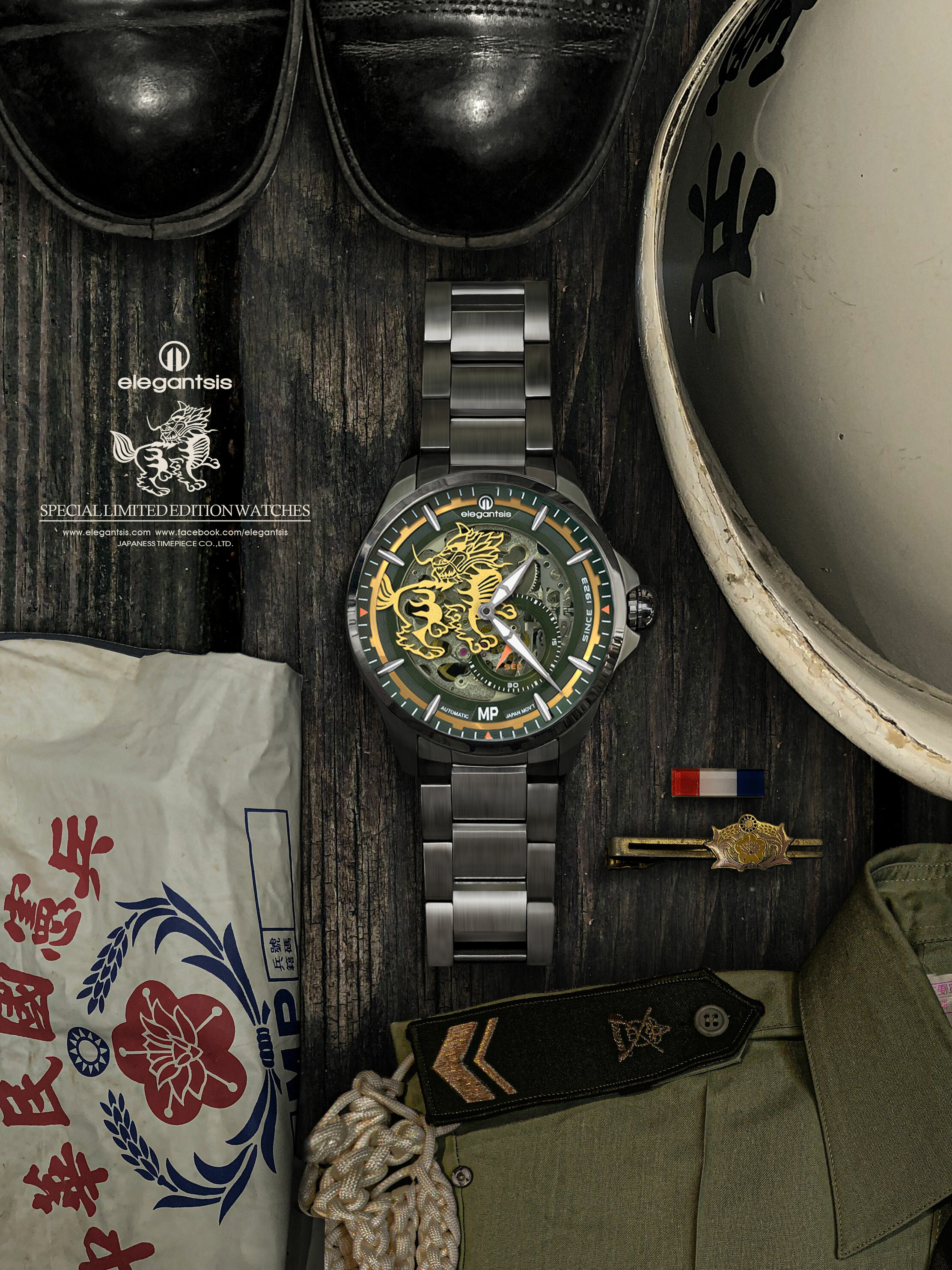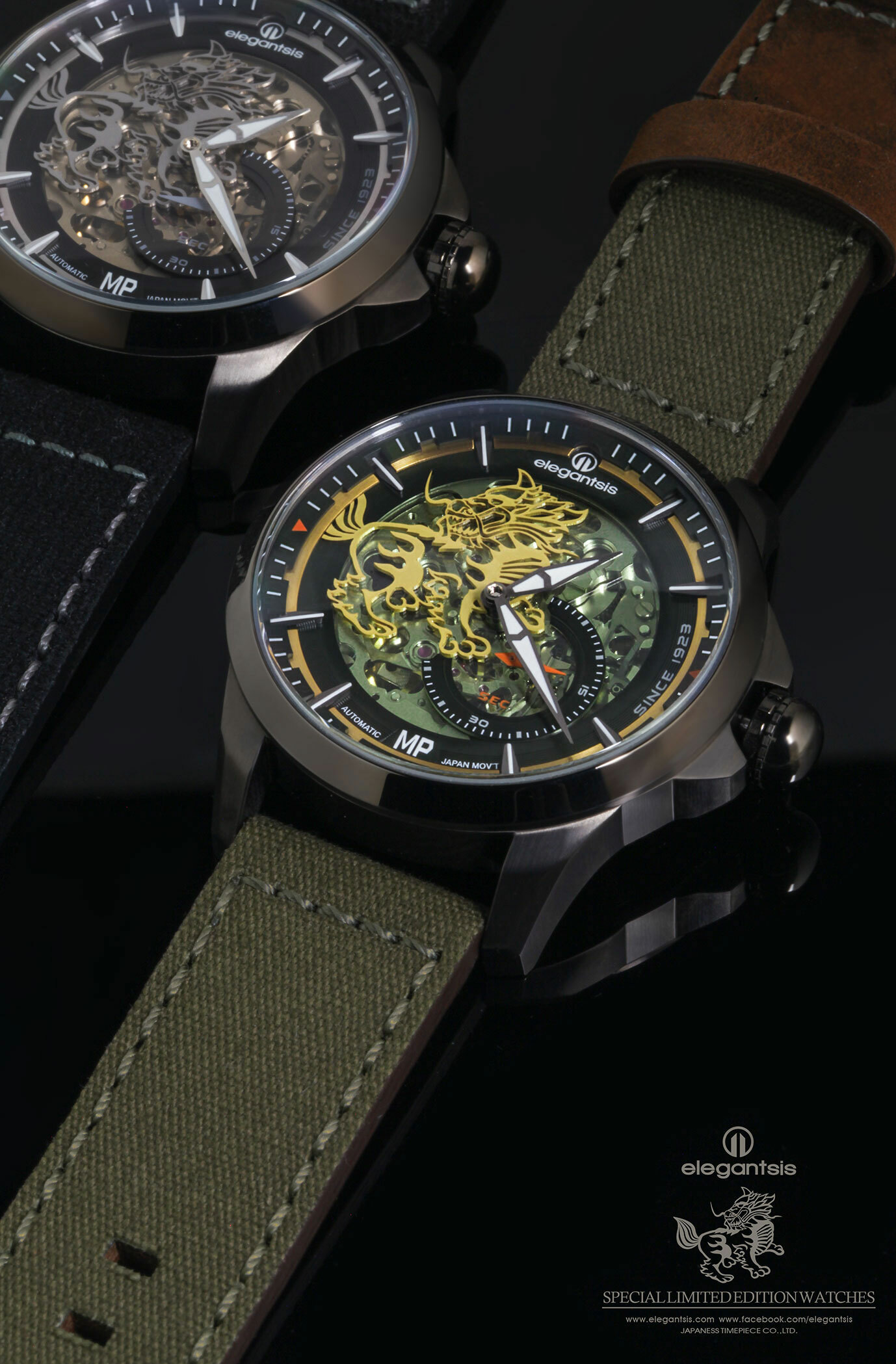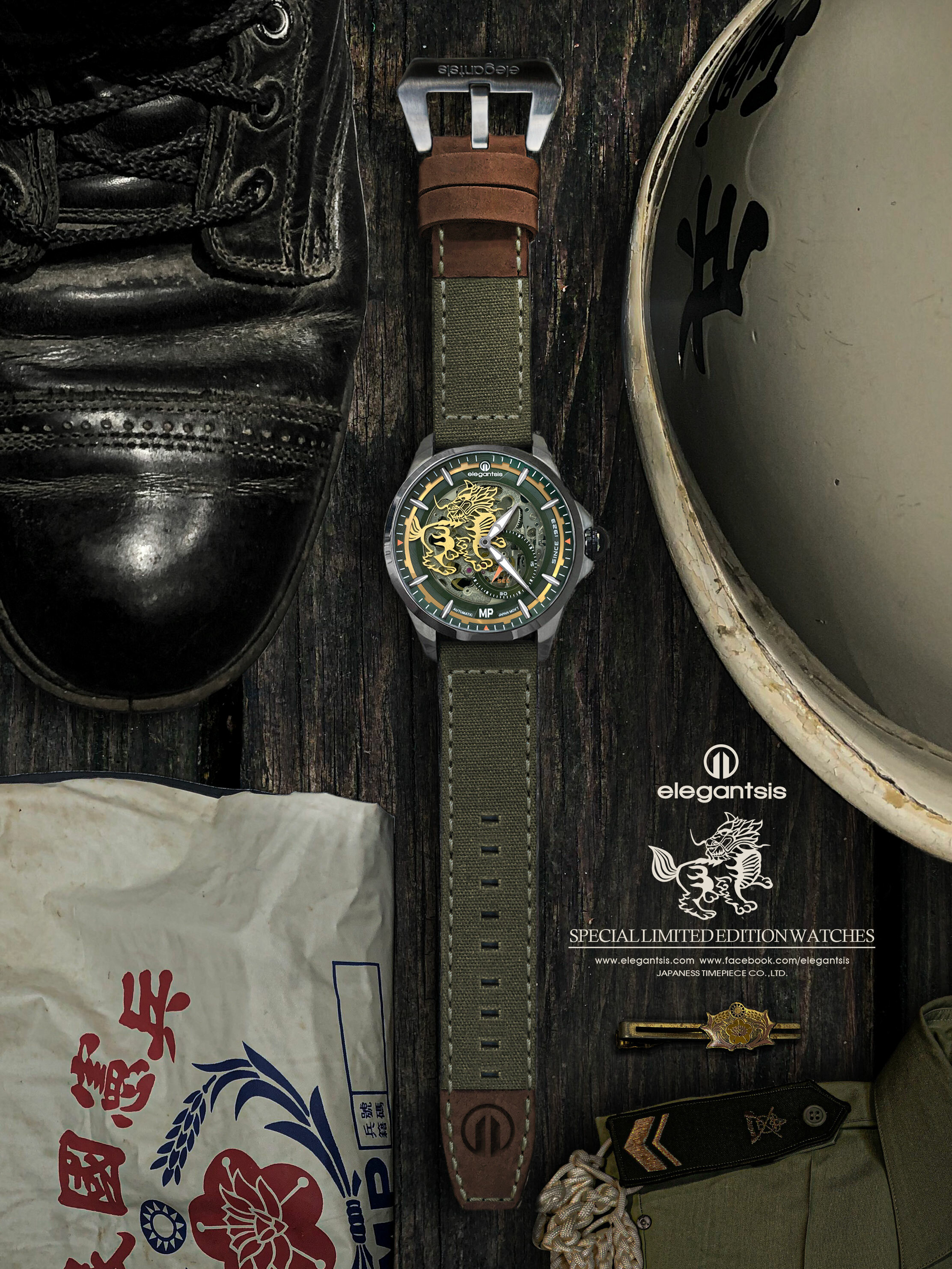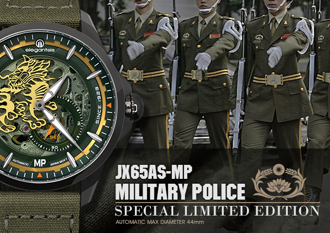 萬年鐘錶 - elegantsis 愛樂時 綠色款 - 憲兵特別限定款機械男錶 ELJX65AS-MP-8G01LC