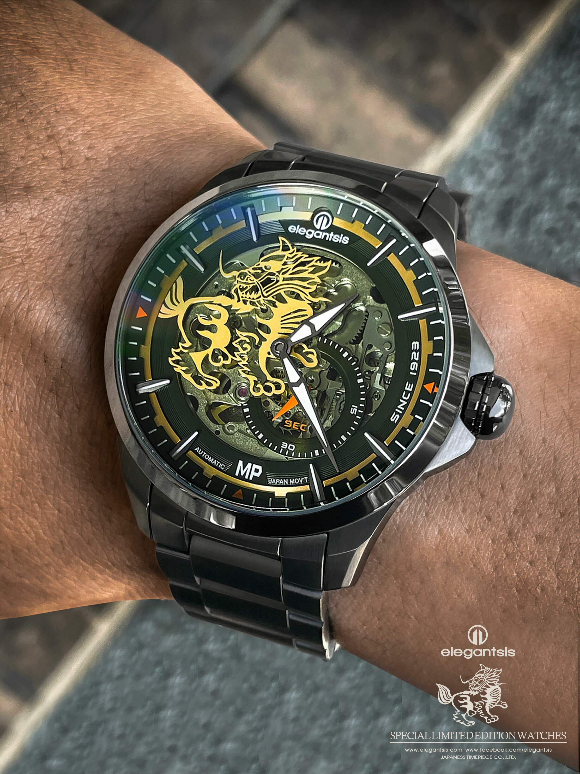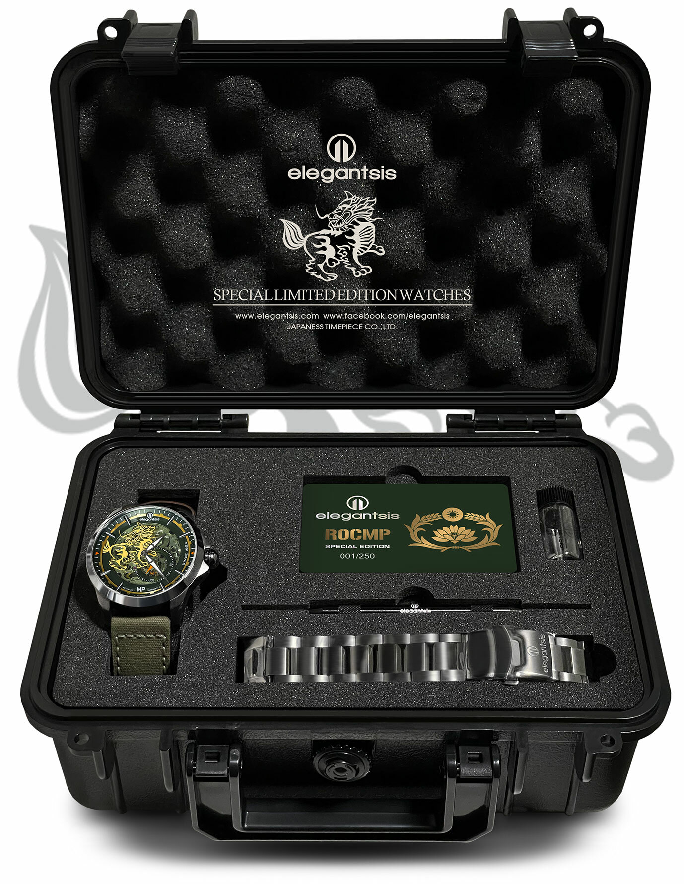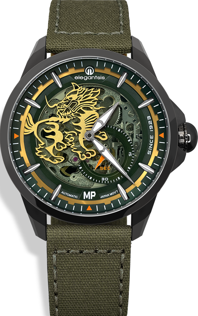 萬年鐘錶 - elegantsis 愛樂時 綠色款 - 憲兵特別限定款機械男錶 ELJX65AS-MP-8G01LC