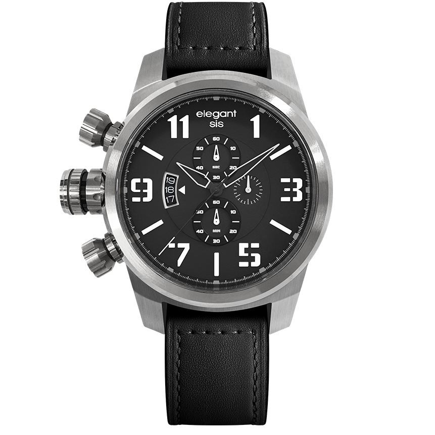 萬年鐘錶 - elegantsis 愛樂時 JF48個性是戴在手上的 可搭配選購個性對錶 ELJT48-OB12LC 黑錶面搭配黑色皮革 錶徑48MM