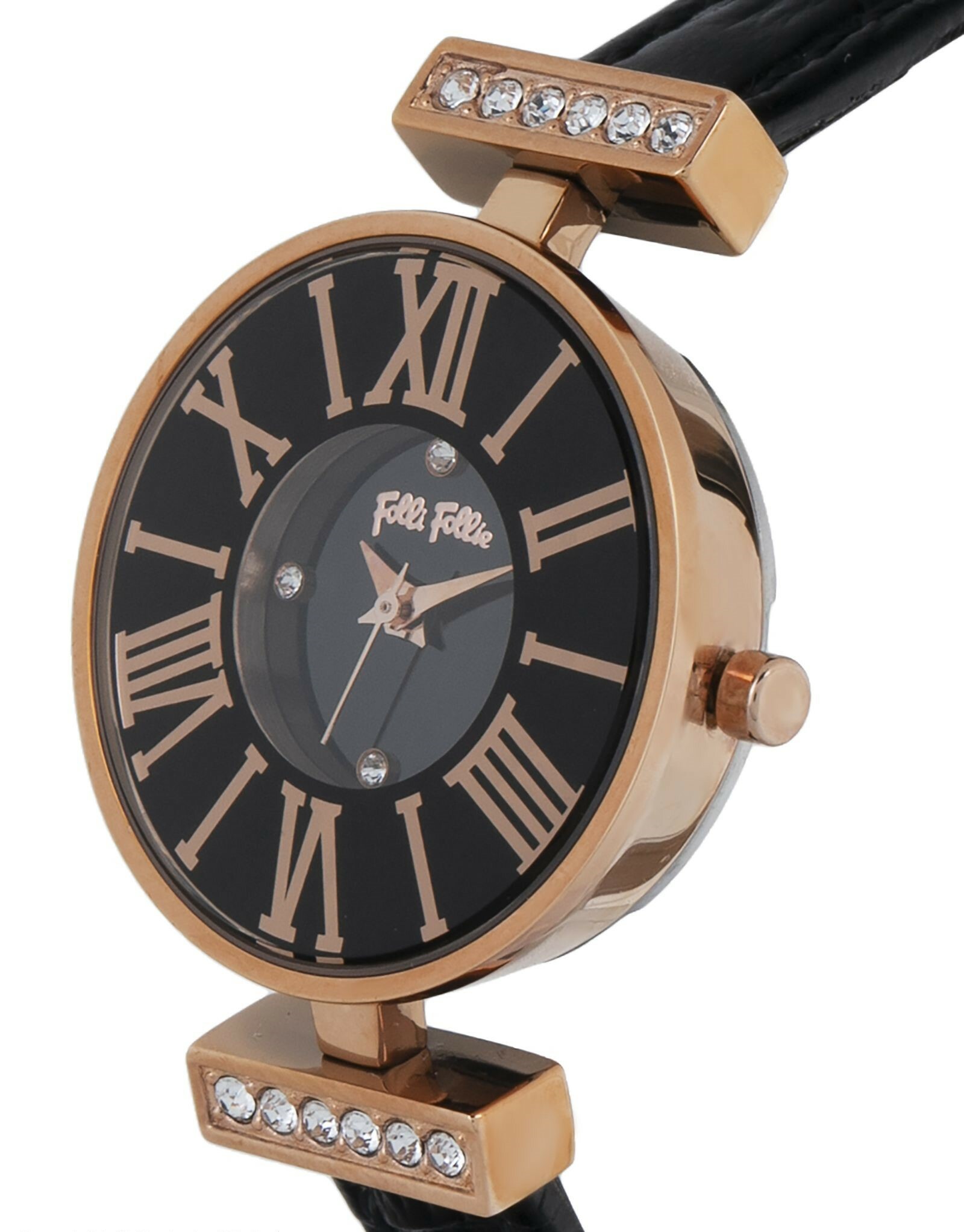 萬年鐘錶 - FOLLI FOLLIE 羅馬字黑面優雅皮革款女錶 WF13B014SSK 錶徑26MM