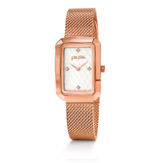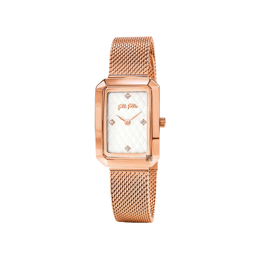 萬年鐘錶 - FOLLI FOLLIE WONDERFLY 玫瑰金米蘭帶方型典雅女錶 WF16R026BSW 錶徑22MM