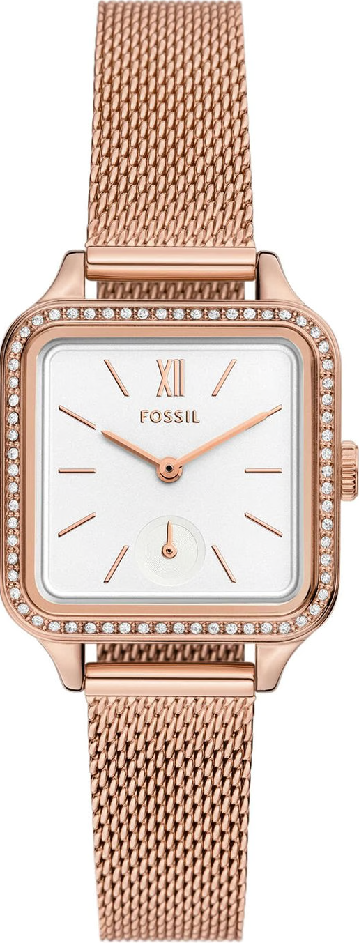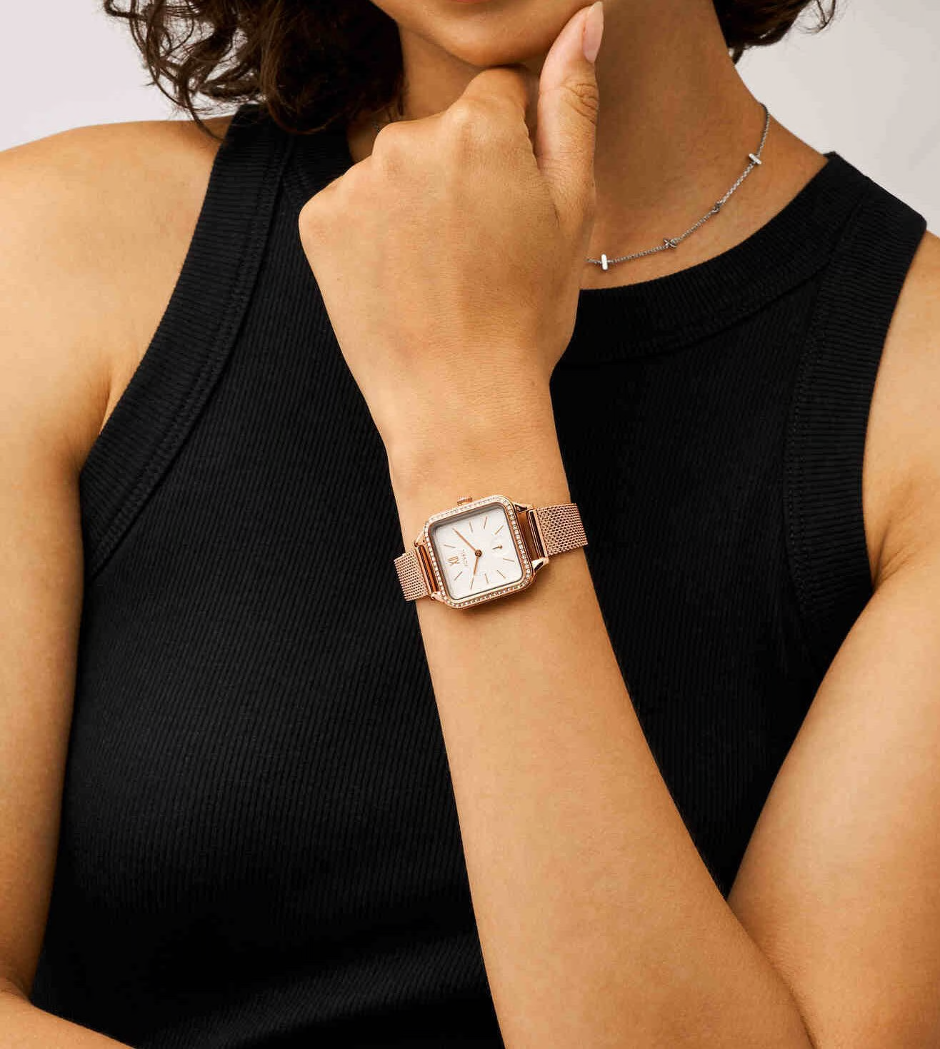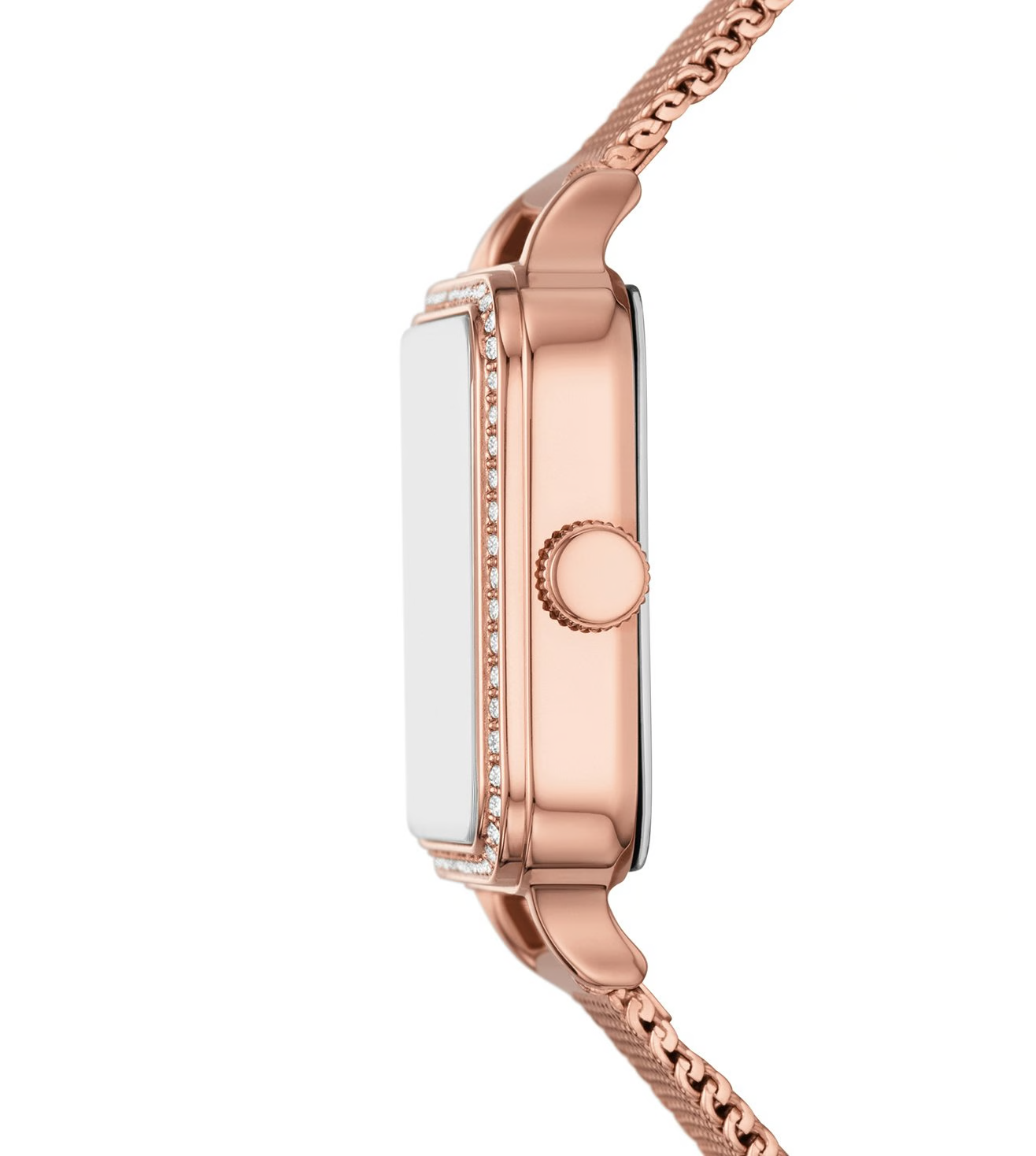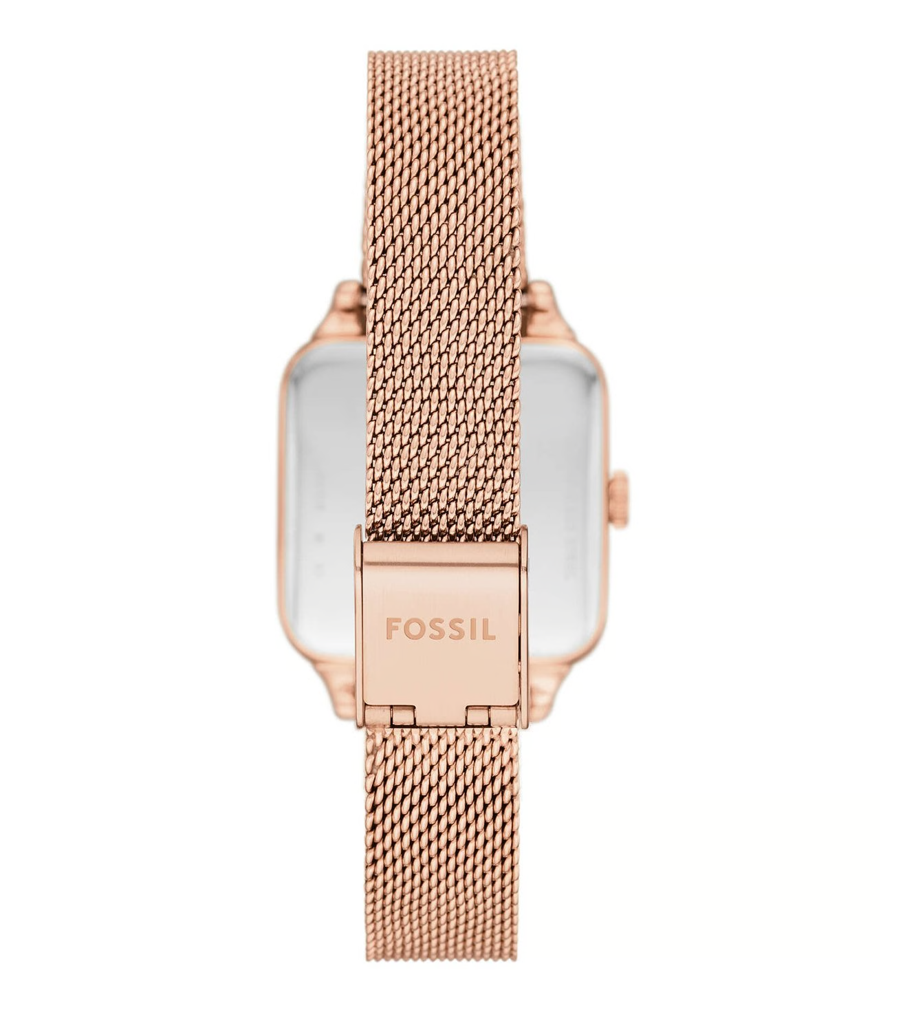 •  Fossil  玫瑰金色魅影晶鑽方形簡約米蘭錶帶女錶 BQ3971