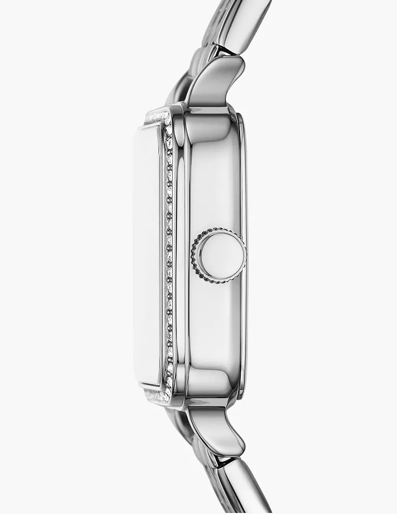 萬年鐘錶 - Fossil Colleen 魅影晶鑽方形簡約不鏽鋼錶帶女錶 BQ3981 錶徑28MM