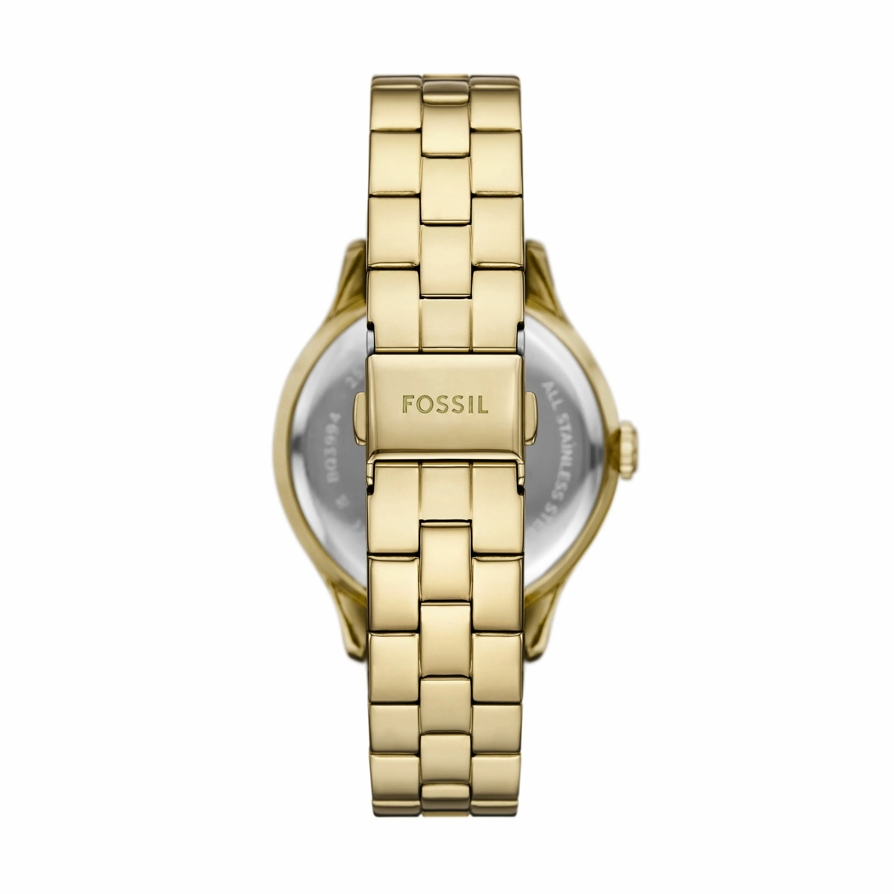 •  Fossil 簡約金色三眼不鏽鋼女錶 BQ3994