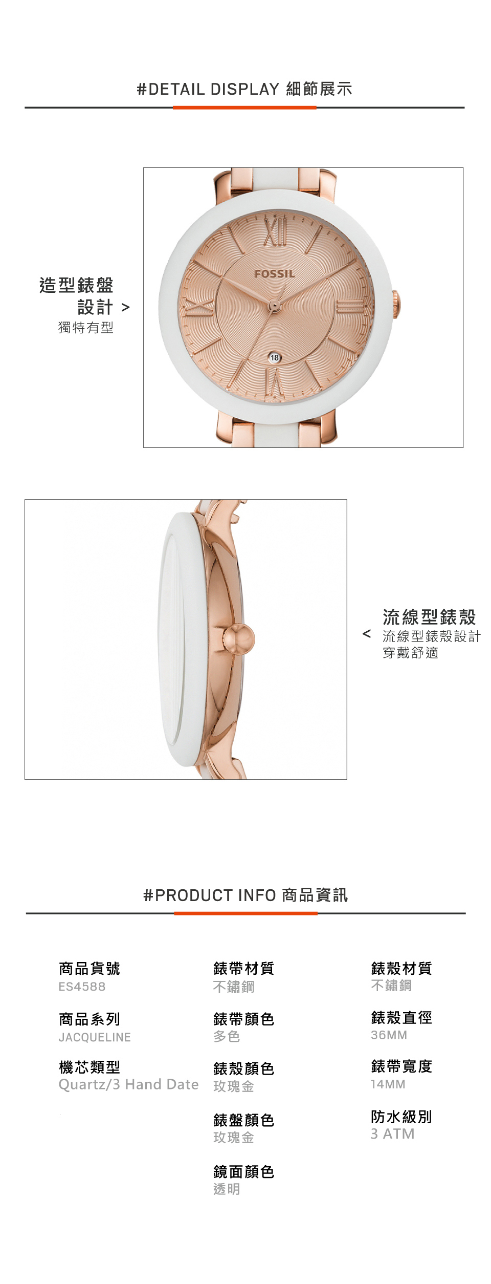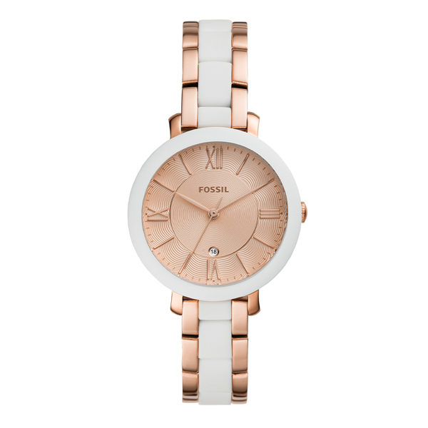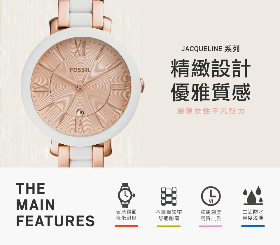萬年鐘錶 - Fossil 雙色白/玫瑰金色女錶 ES4588 錶徑36MM