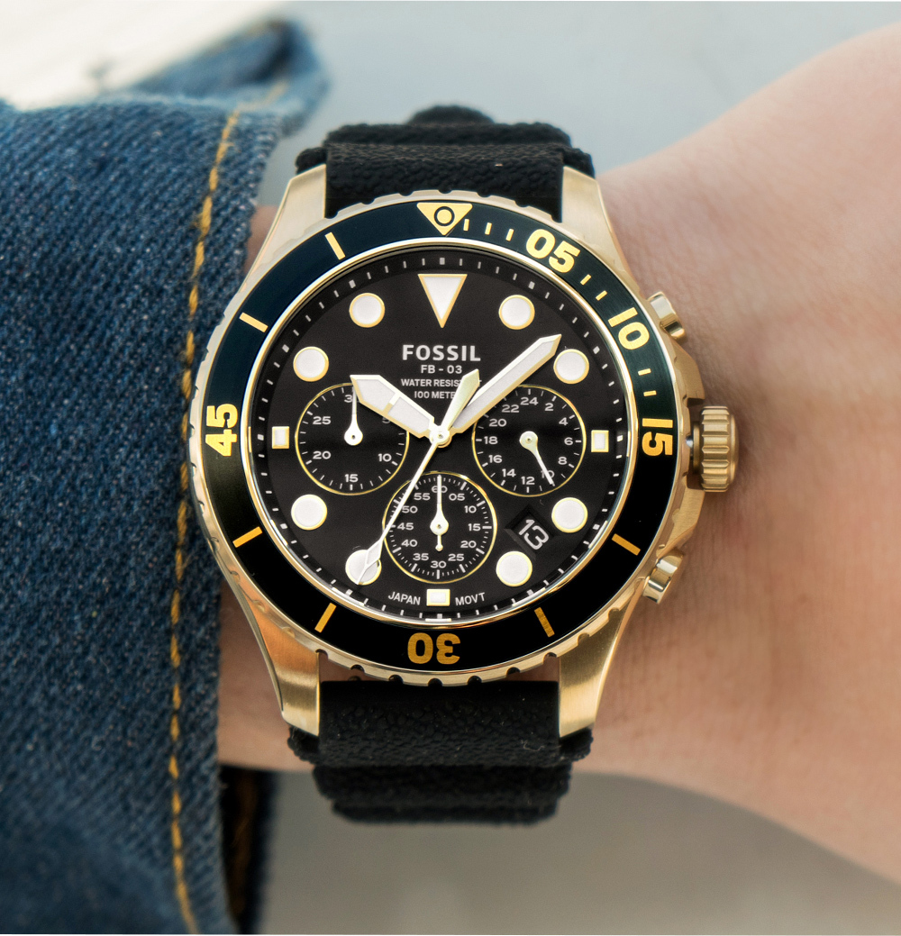 萬年鐘錶 - Fossil Bronson 潛水面盤三眼計時橡膠錶帶男錶 FS5729 錶徑46MM