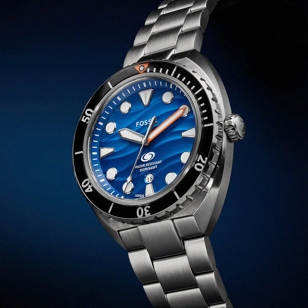 萬年鐘錶 - Fossil 蔚藍海洋面盤石英不鏽鋼潛水男錶 FS6064 錶徑42MM