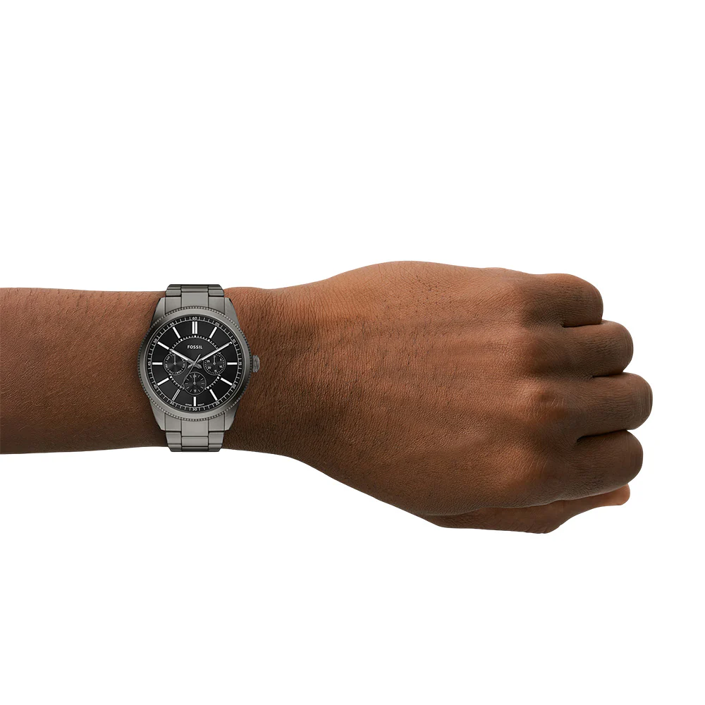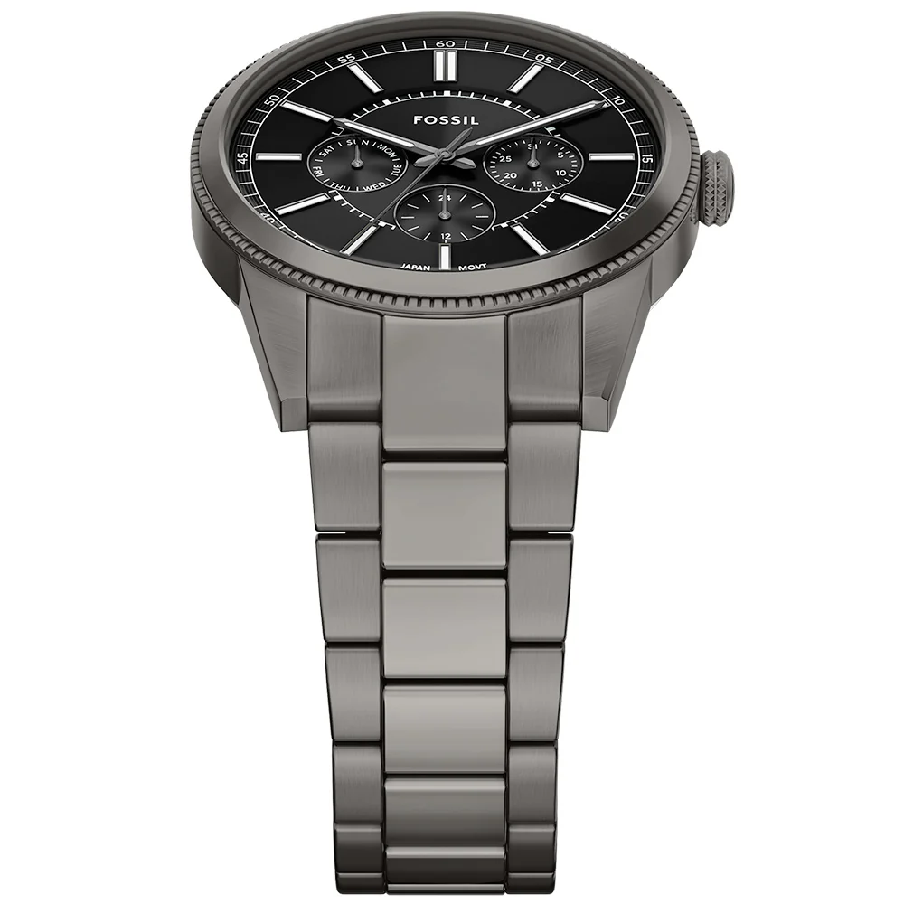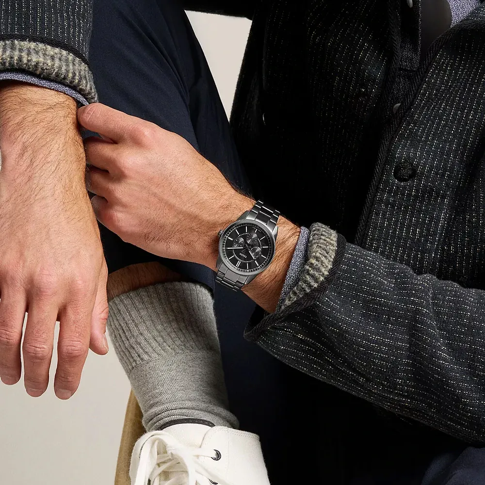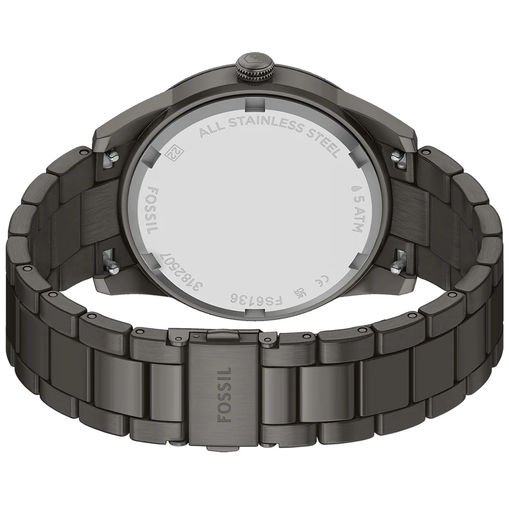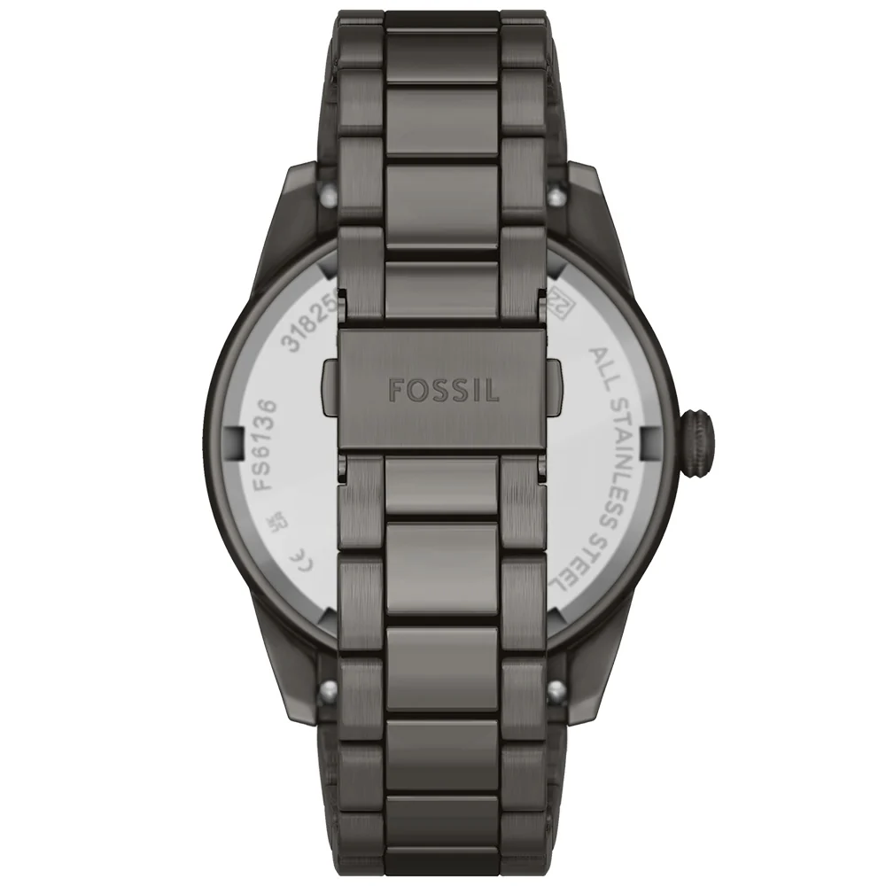 萬年鐘錶 - Fossil 極簡時尚全黑三眼不鏽鋼錶帶男錶 FS6136 錶徑42MM