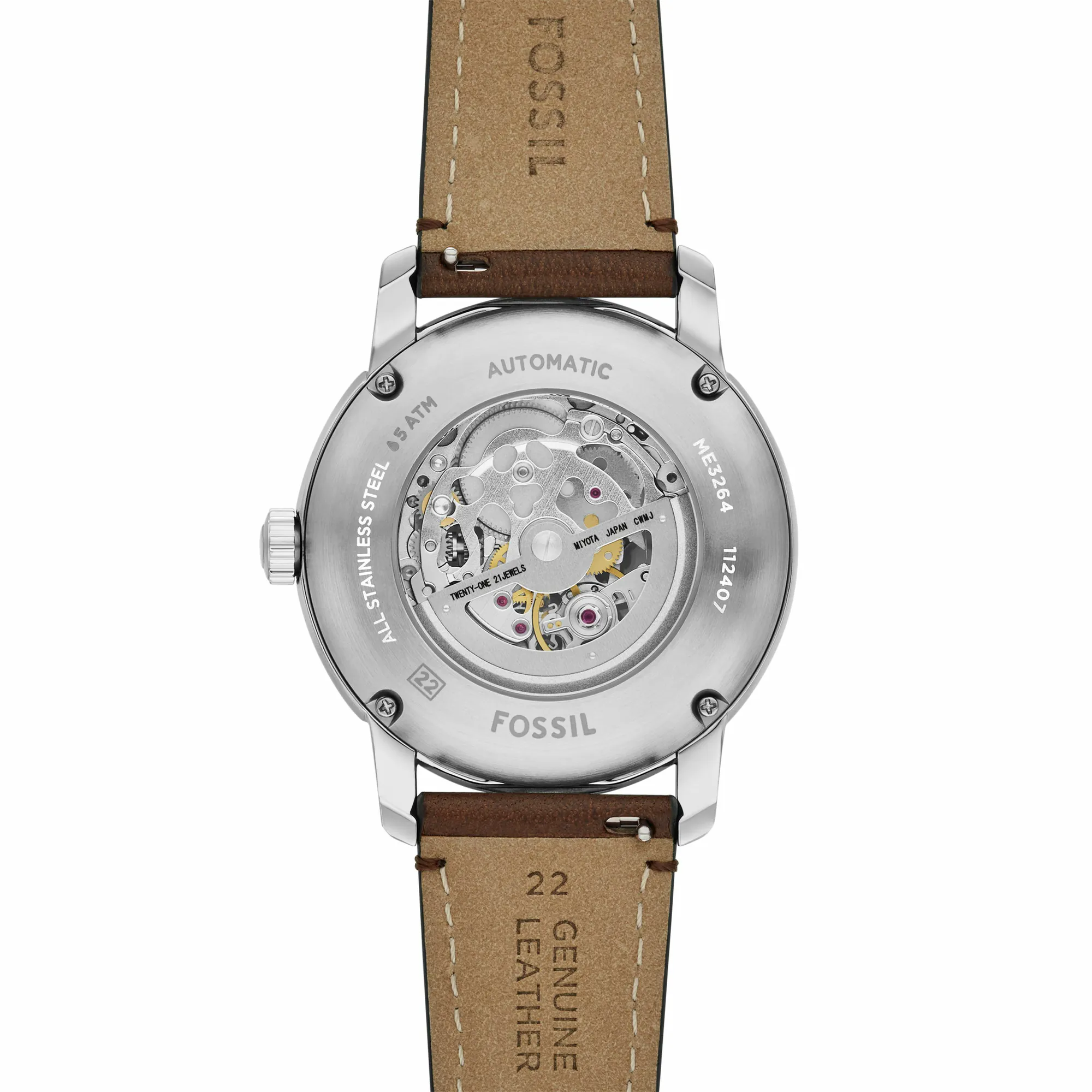 萬年鐘錶 - Fossil 休閒時尚皮革款機械自動男錶 ME3264 錶徑43MM
