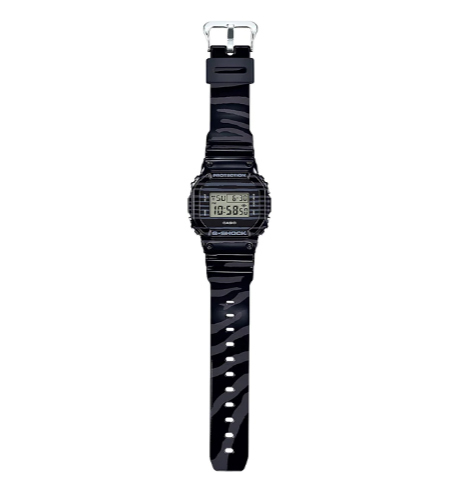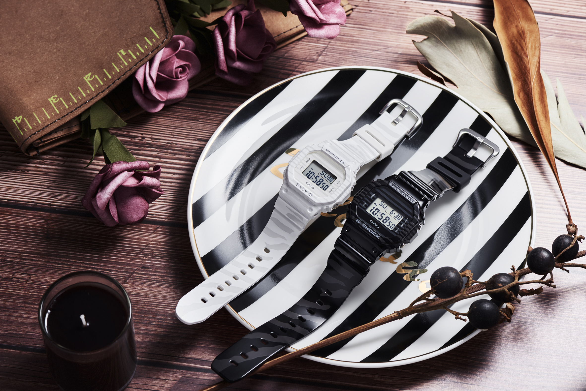 以黑、白雙色為基底,搭配灰色的斑馬紋路印於錶殼、錶帶與錶面上,