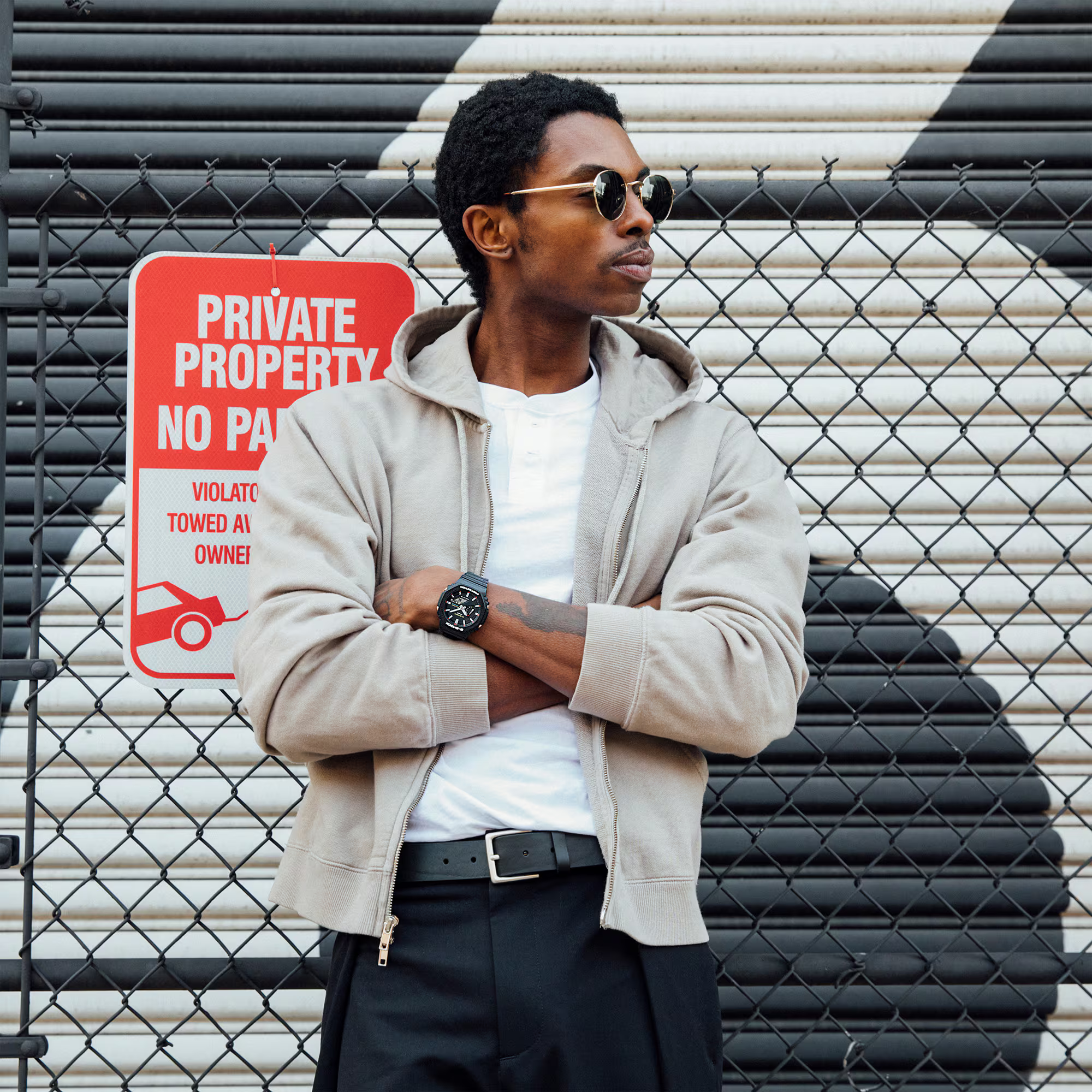 採用八角形錶圈的簡約手錶。忠實再現原創配色,加入 G-SHOCK 紅色,代表勇於挑戰的熱情;藍色,象徵優異的防水性能;以及黃色,表示強悍的耐衝擊性能。