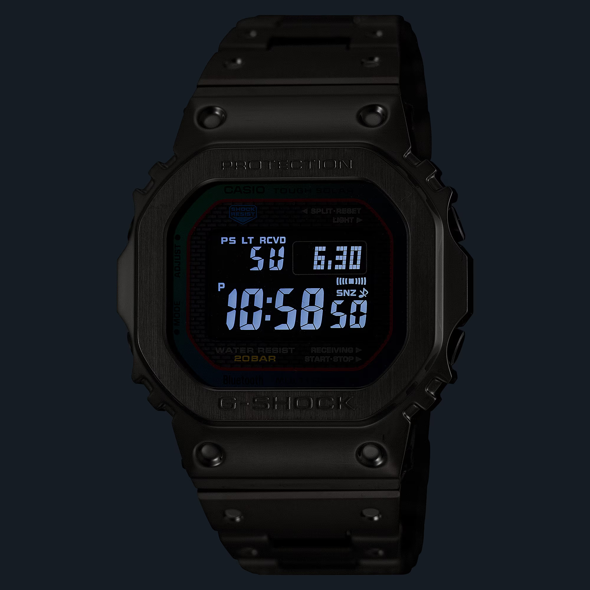 •  全金屬家族生力軍  光譜風格金屬系列太陽能藍牙運動不鏽鋼款運動電子錶  GMW-B5000BPC-1