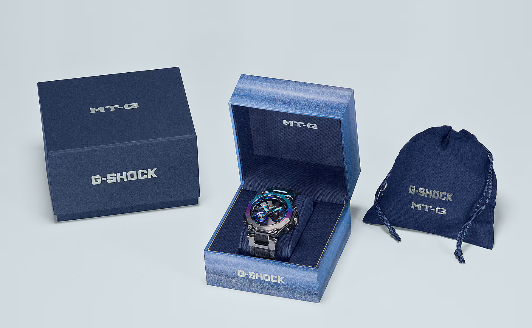 萬年鐘錶 - G-SHOCK MT-G系列 漸層彩虹圈暴風雲錶帶太陽能藍芽電波耐震男錶 MTG-B2000YST-1A 錶徑 : 49.8mm