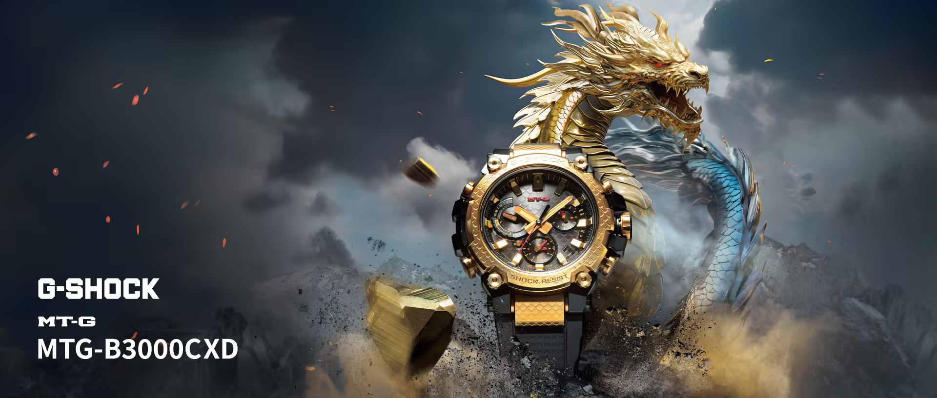 萬年鐘錶 - G-SHOCK MT-G系列 霸氣金龍遨遊天際太陽能藍芽電波運動質感男錶 MTG-B3000CXD-9A 錶徑 : 51mm
