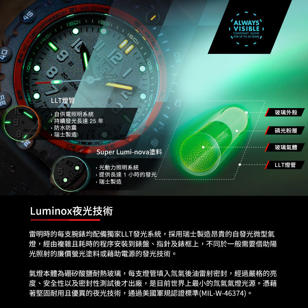 氚氣燈管16支 (綠色 / 橘色)