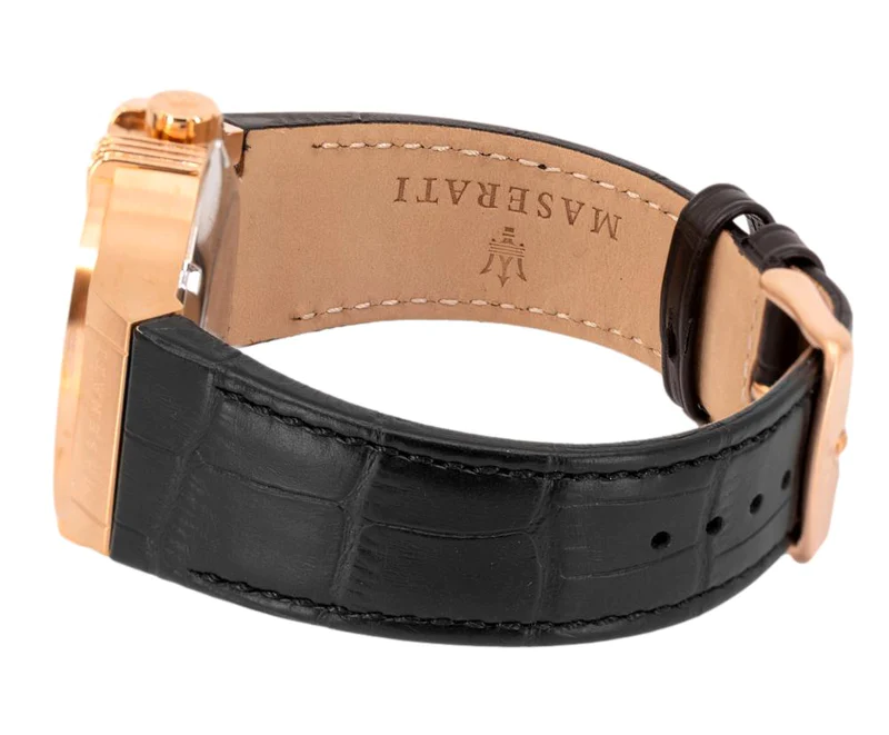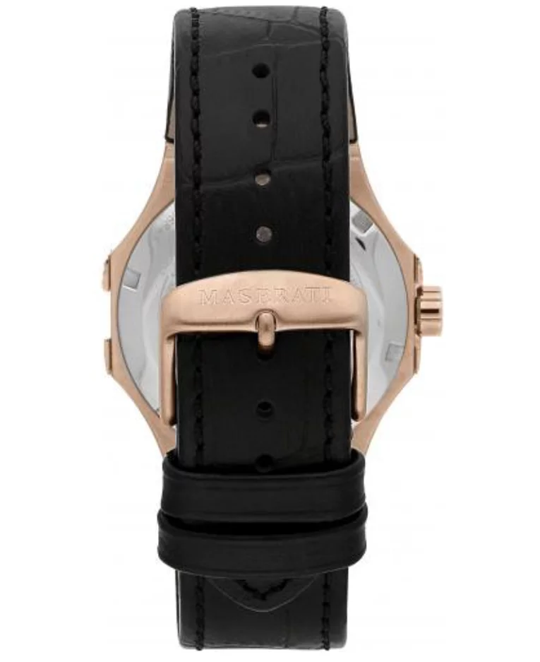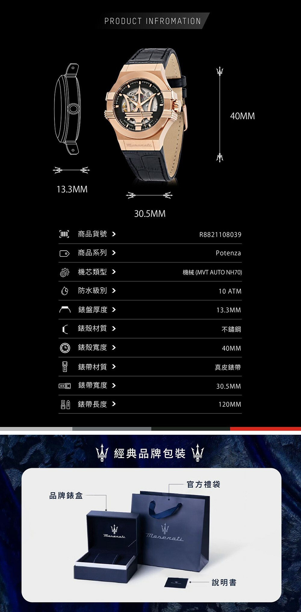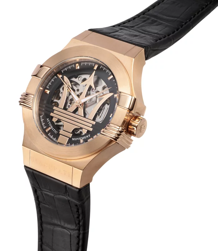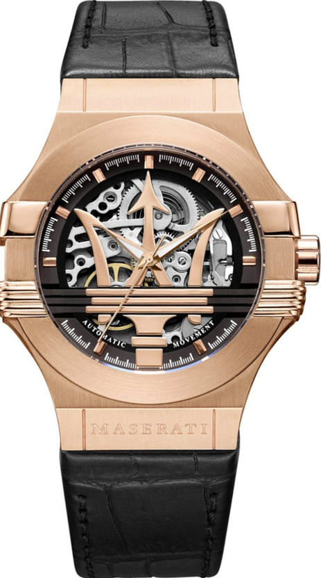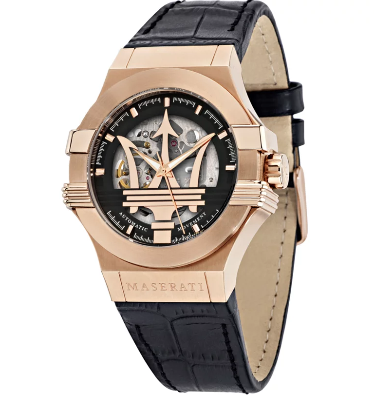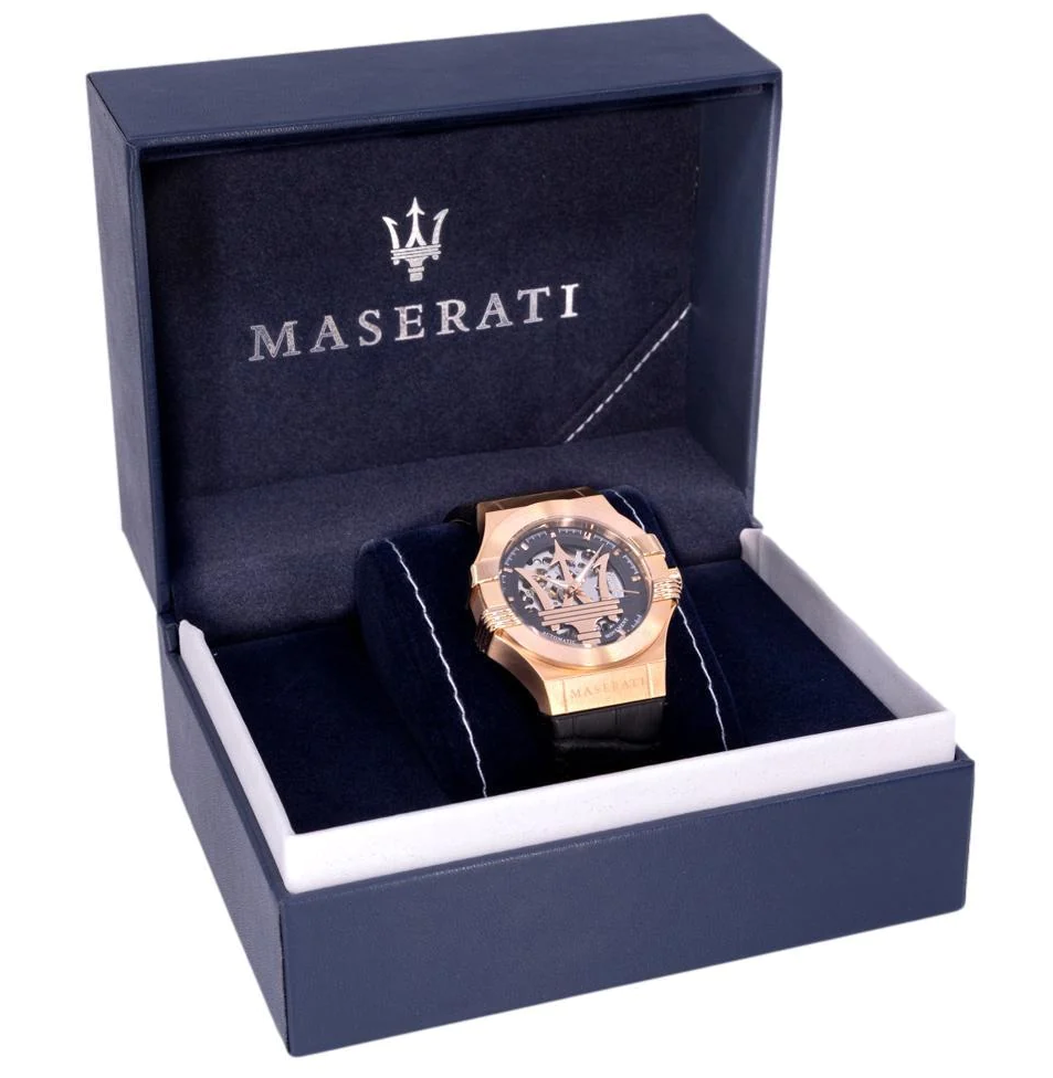 MASERATI 瑪莎拉蒂 Potenza 力霸羣雄系列鏤空機械手錶 霧黑銅 黑色真皮錶帶 R8821108039 錶徑: 40MM