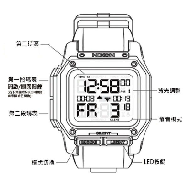 萬年鐘錶 - NIXON 尼克森 衝浪 regulus 電子錶 經典黑 A1180-867 錶徑46MM